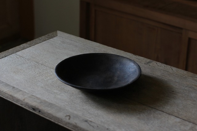 こちらは低温で焼いたあとに拭き漆を施していて、温かみのある柔らかい印象の作品に仕上がっています。 【素材】 陶器 【サイズ】 約φ20×h3cm 【備考】 ・電子レンジ、食洗機の使用はお避けください。 ・低温で焼いた陶器に拭き漆をしています。低温だと水がしみやすいためです。とはいえ、完全防水ではないので、経年変化がよくわかると思います。 ※ご購入前に必ず、カテゴリーにあります「ご購入前の注意事項」をご覧ください。
