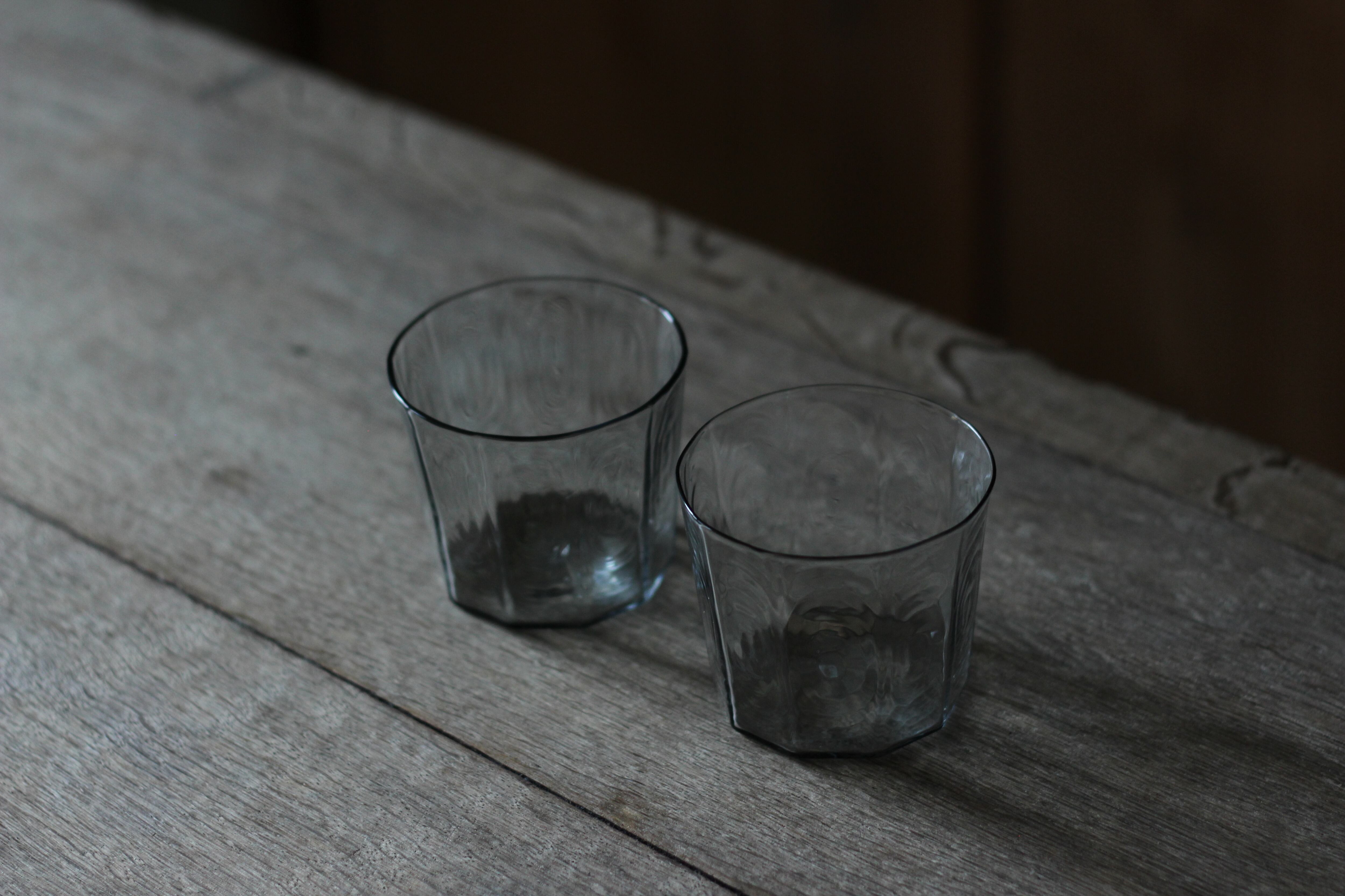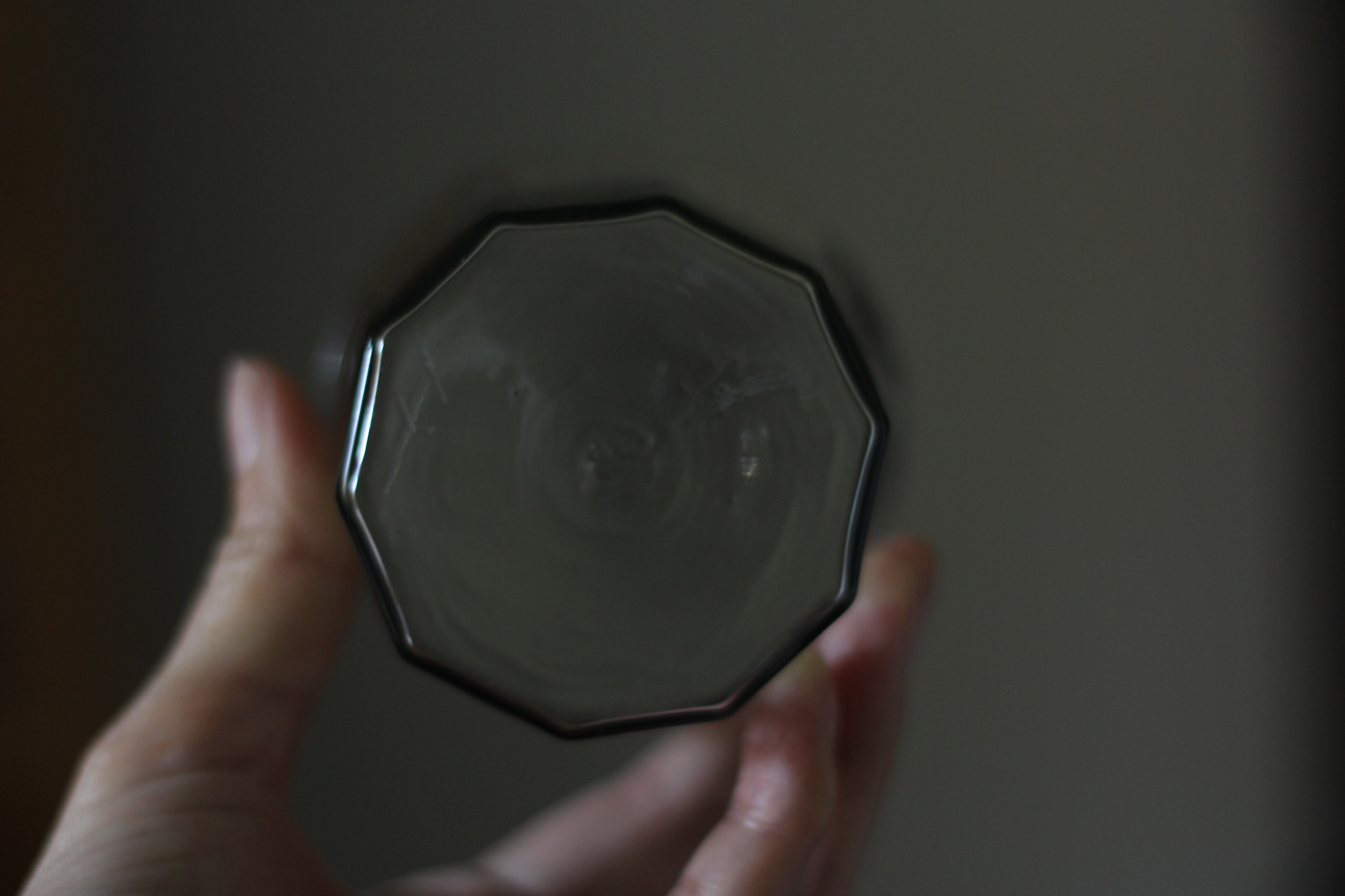 型吹きによる側面のゆらぎ、十角のラインで引き締まった風合に。