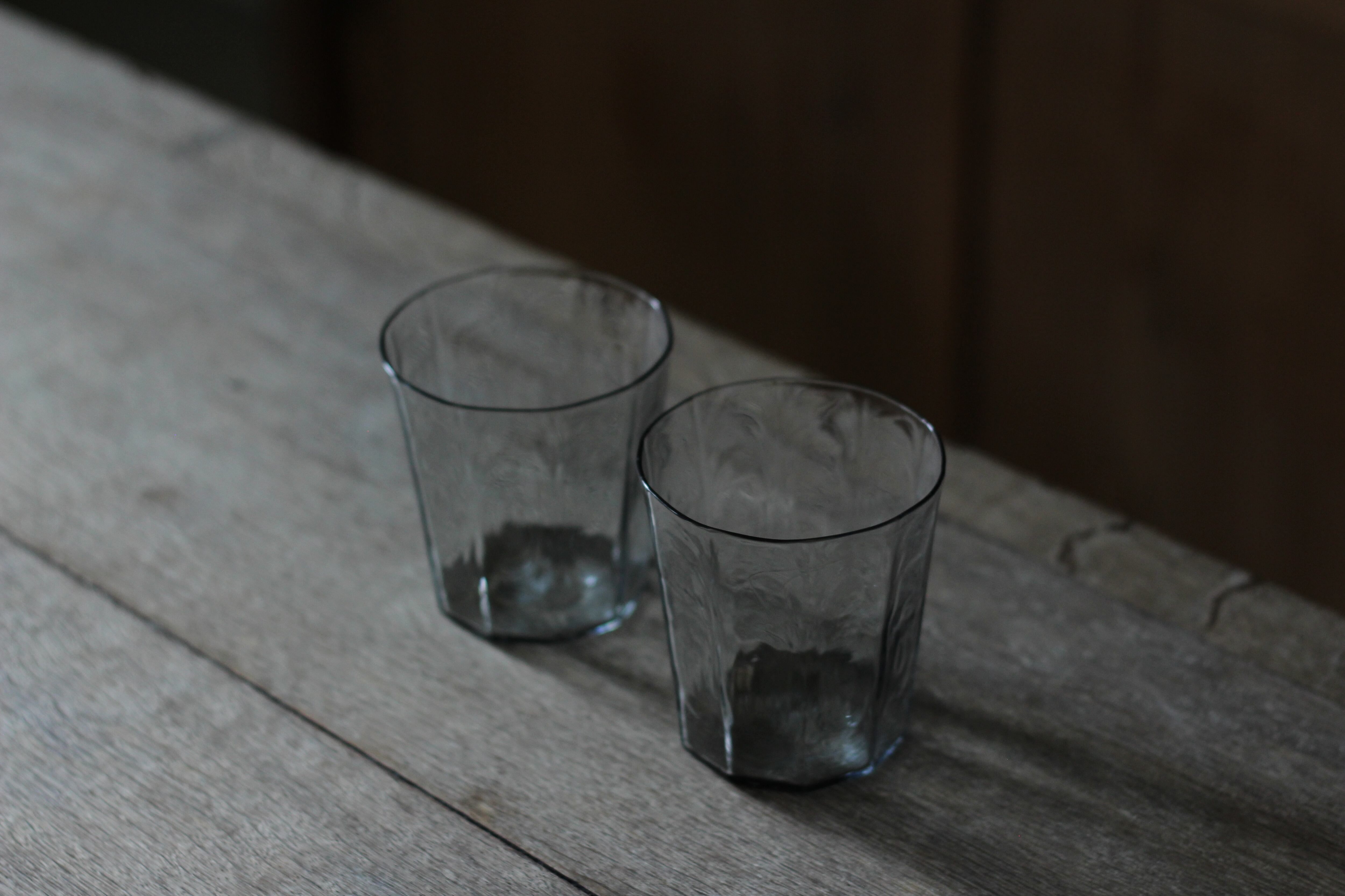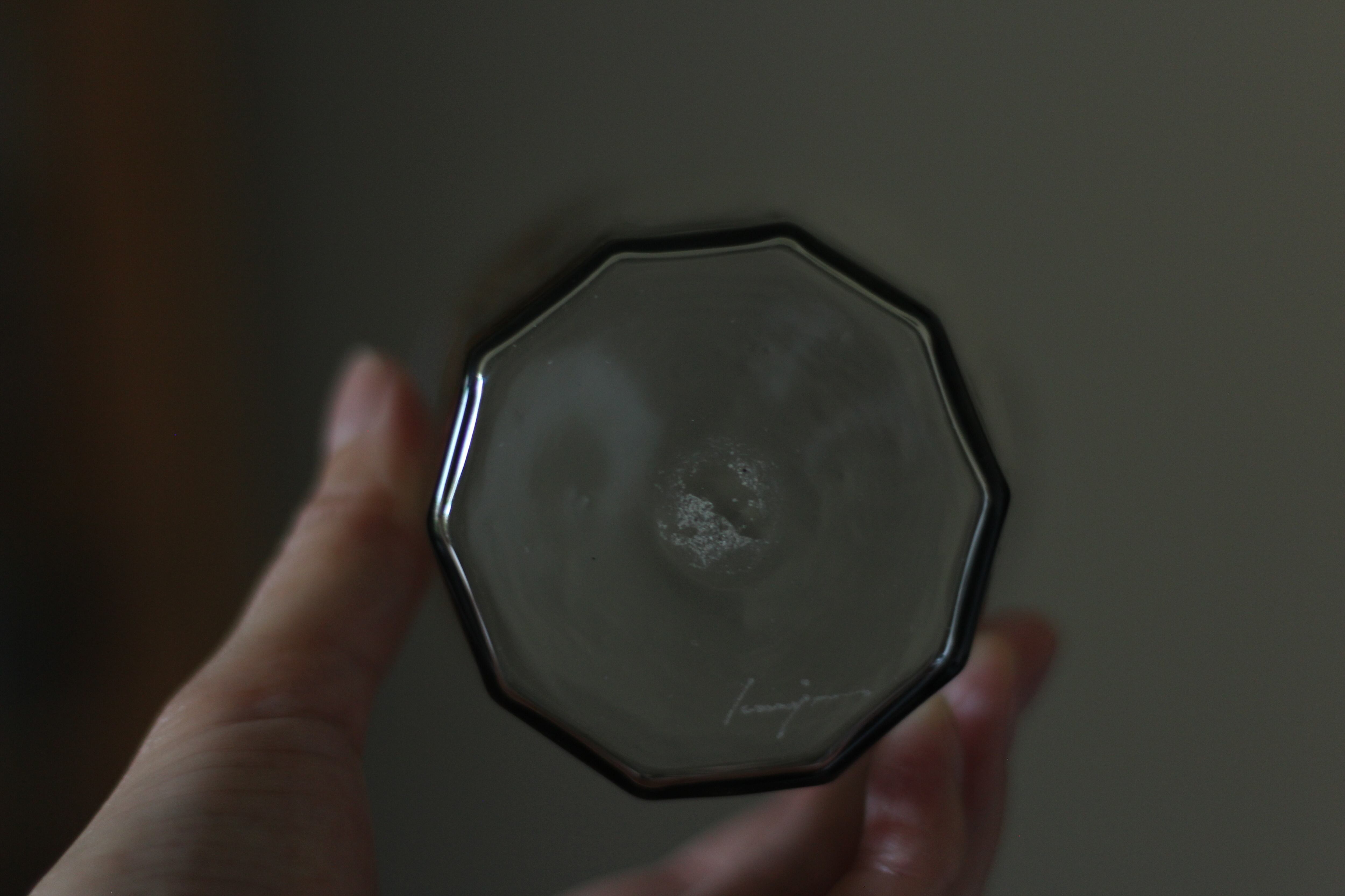 型吹きによる側面のゆらぎ、十角のラインで引き締まった風合に。