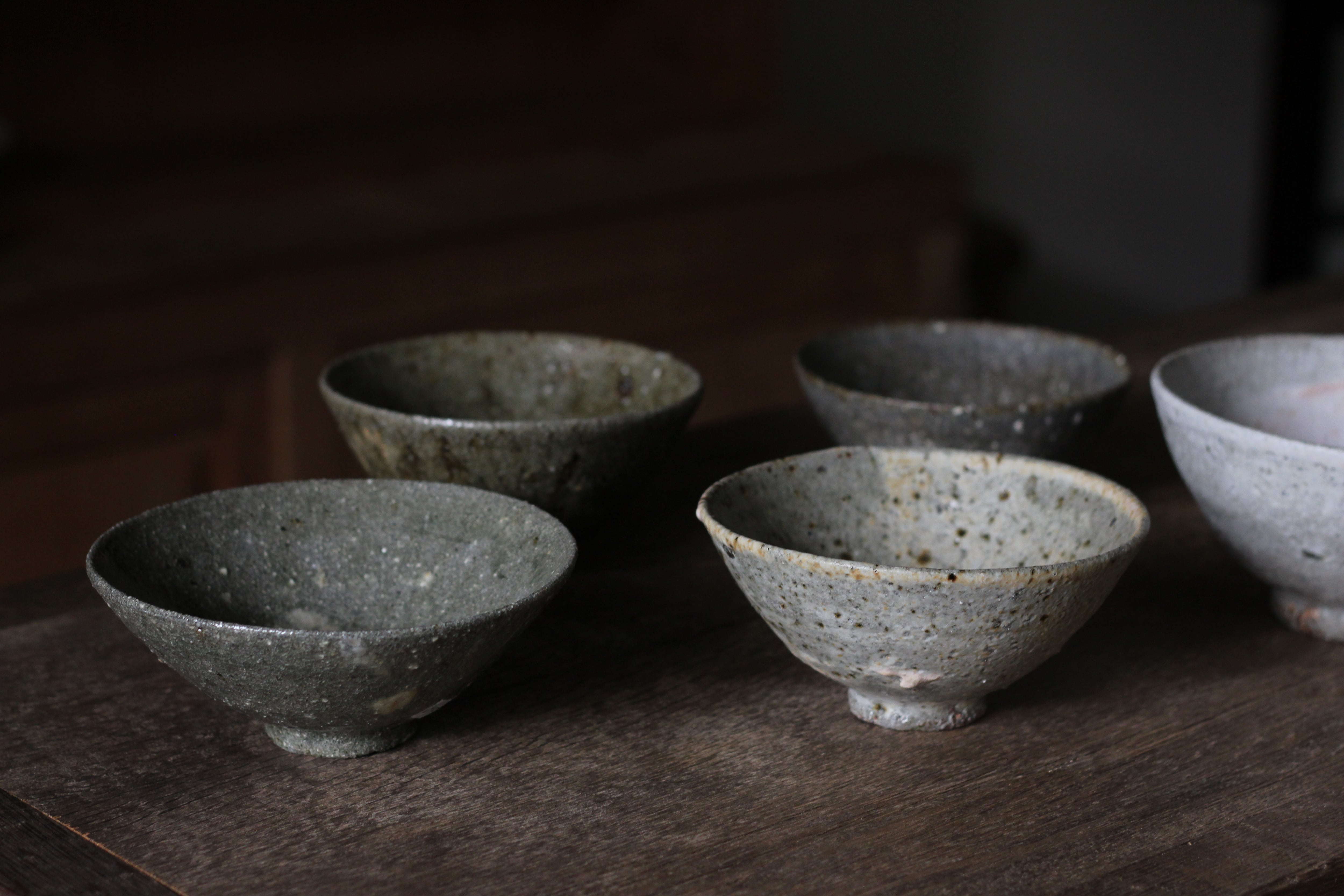 A~Dは果樹灰釉、Eは長石釉の作品です。