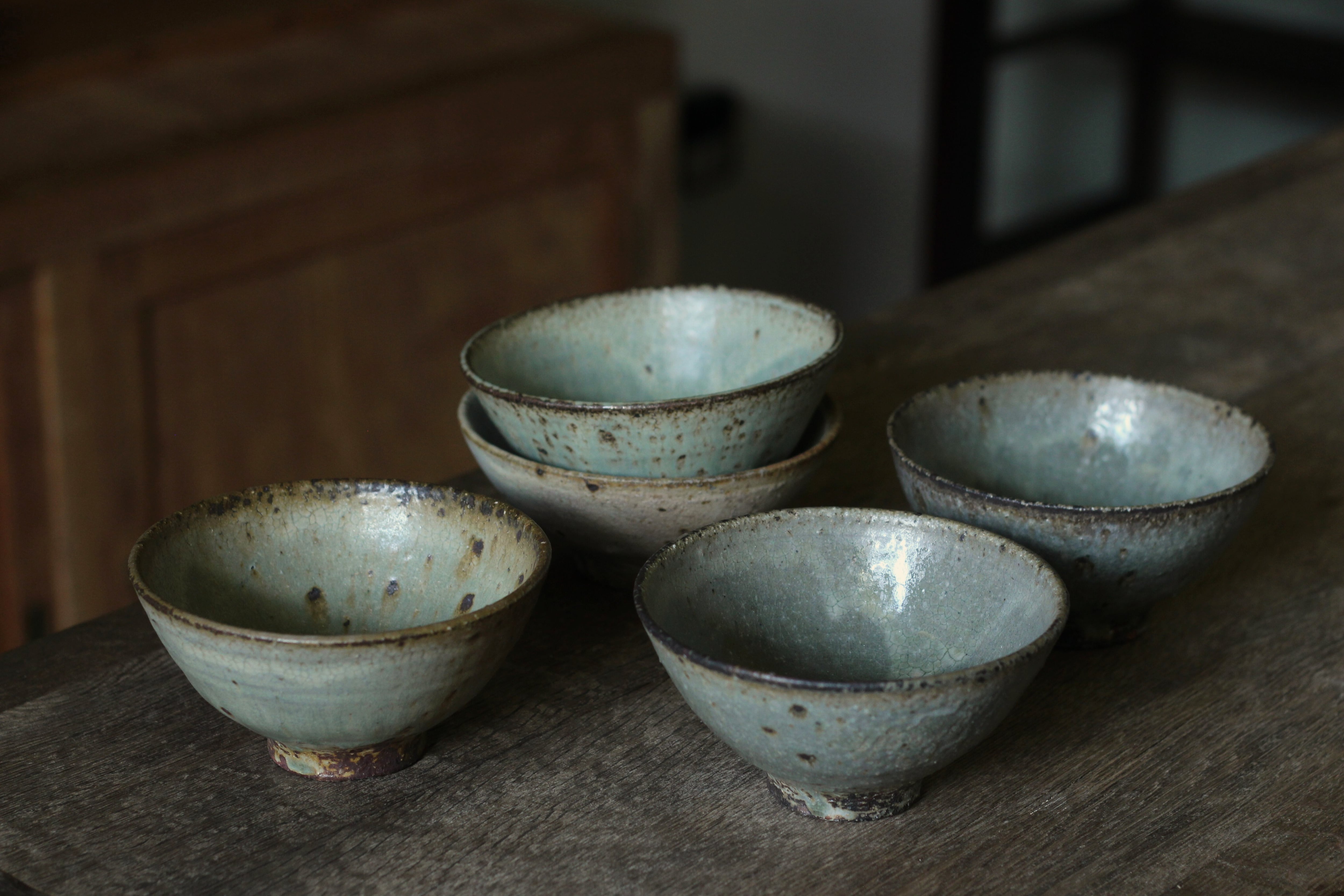 穴窯で焼成された表情豊かなうつわです。木灰は主に、作品の焼成後に窯から出た灰を使用。白化粧を施した後に、その木灰釉を掛けています。それぞれ表情が全く異なるのでとても面白みのある作品です。
