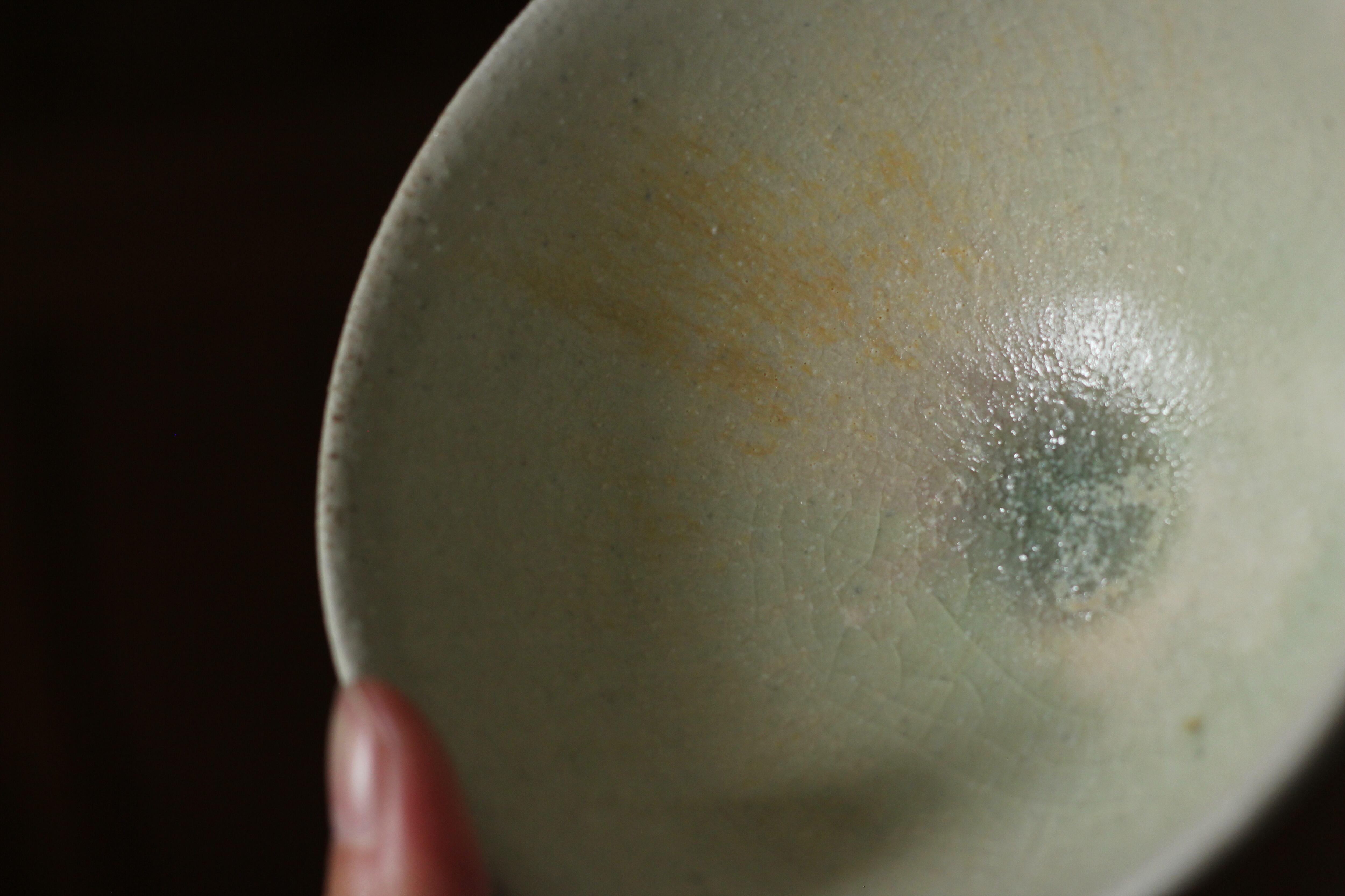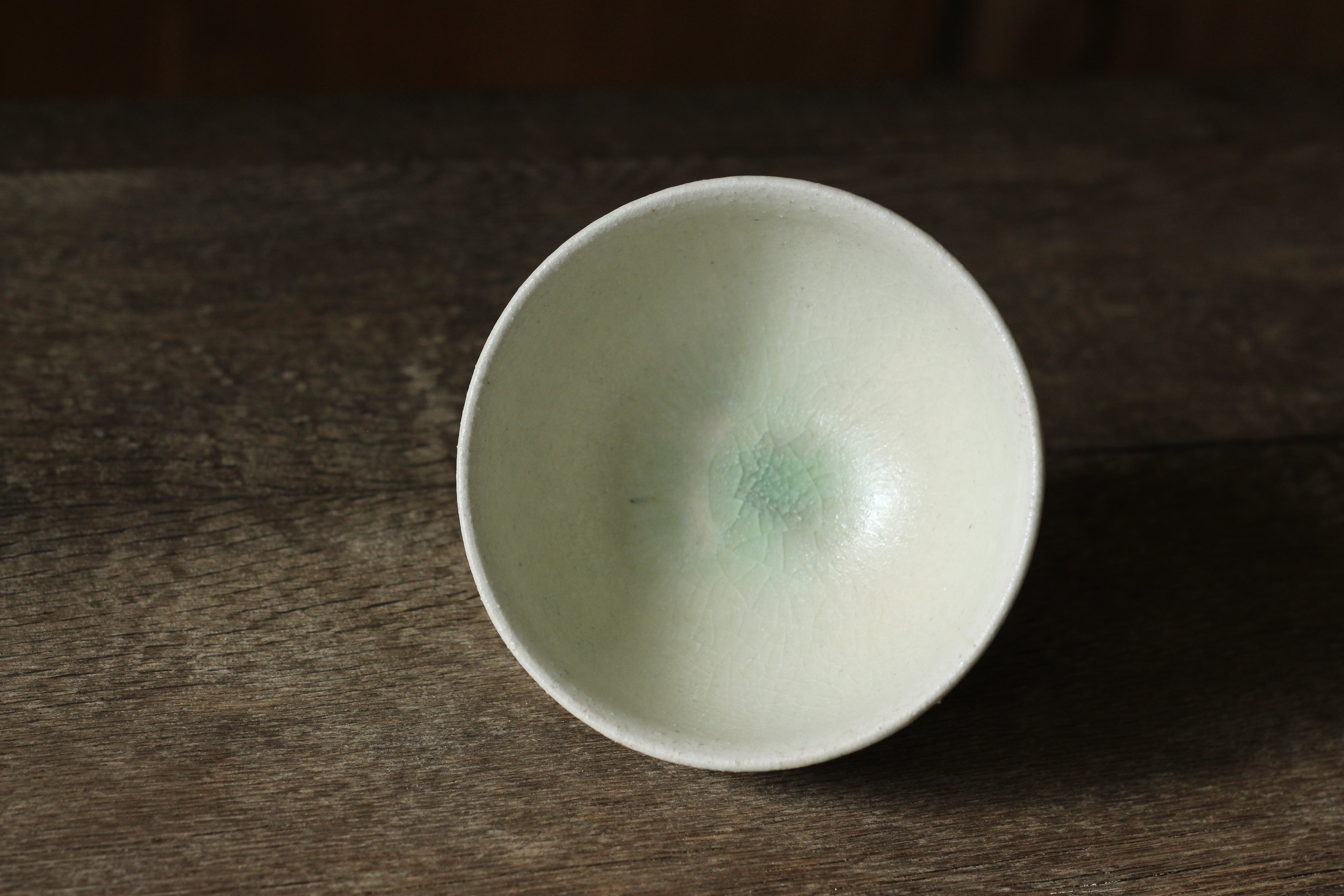 こちらは白土に林檎灰釉薬を掛けたもの。清楚でぬくもりのある作品に仕上がっています。