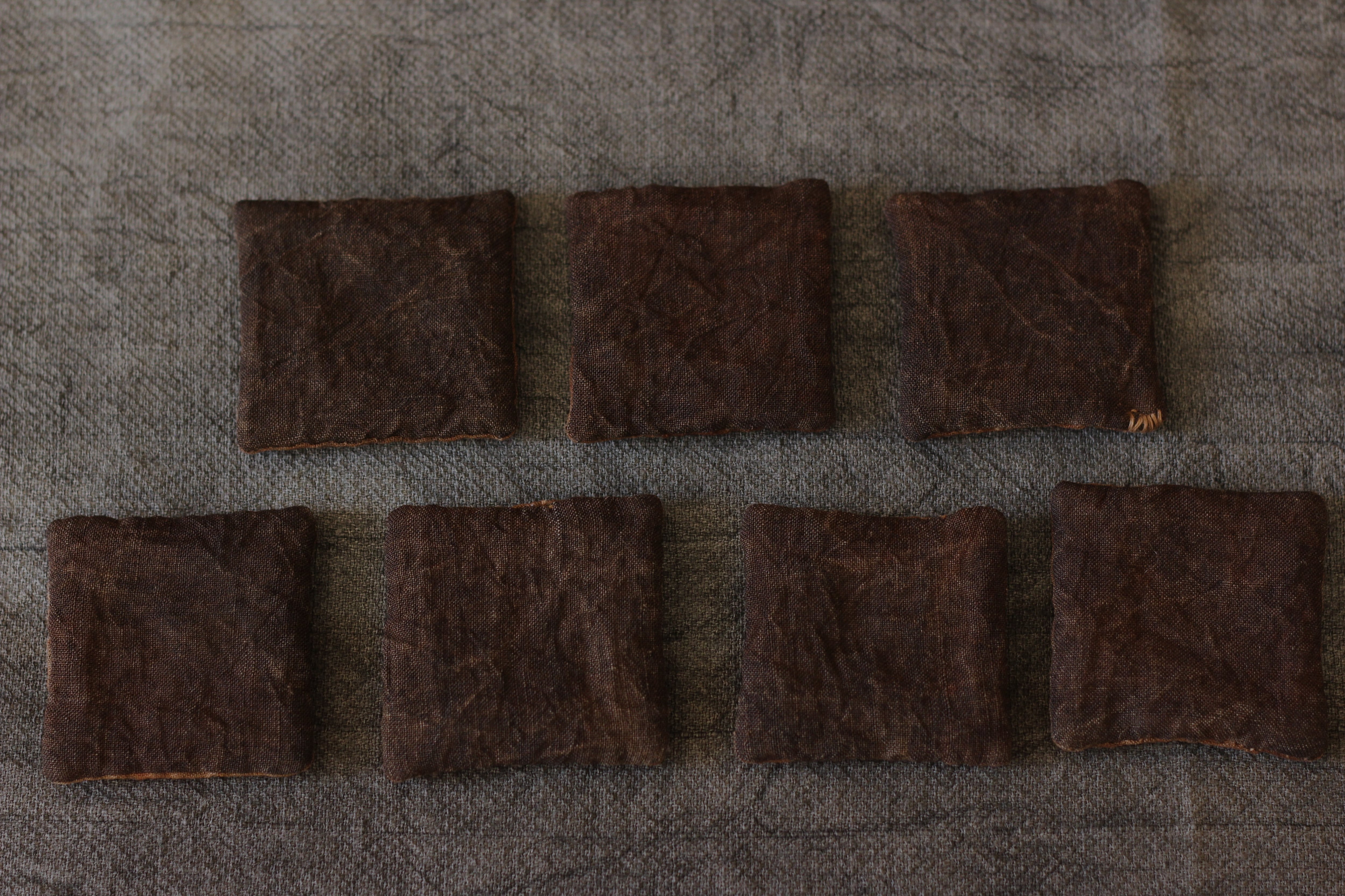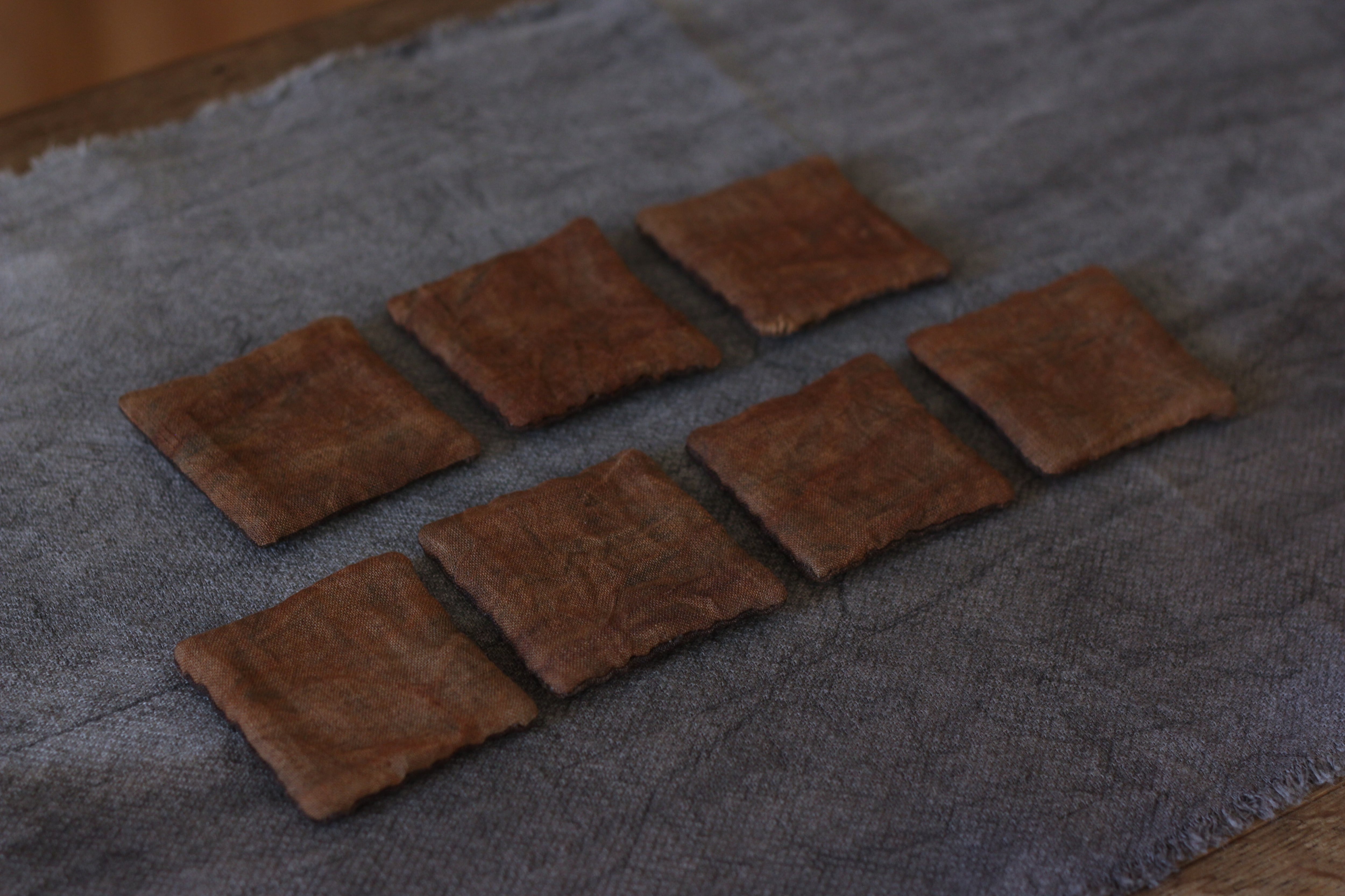 独自に染色を始められたaimai、田島さん。柿渋、藍、松煙、時には土に埋めたり。実験的なこともされながら、1点もの感覚で制作をされています。