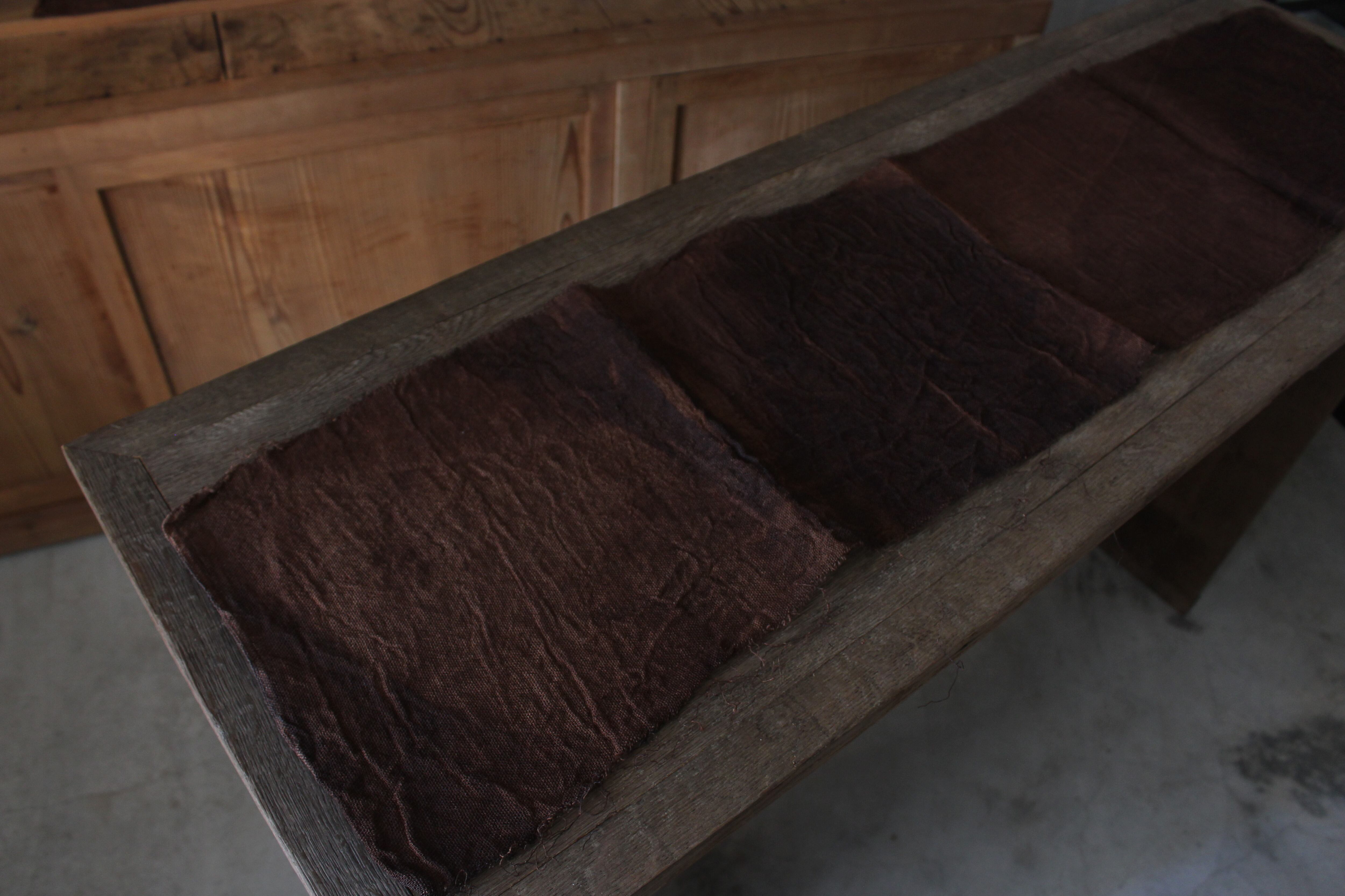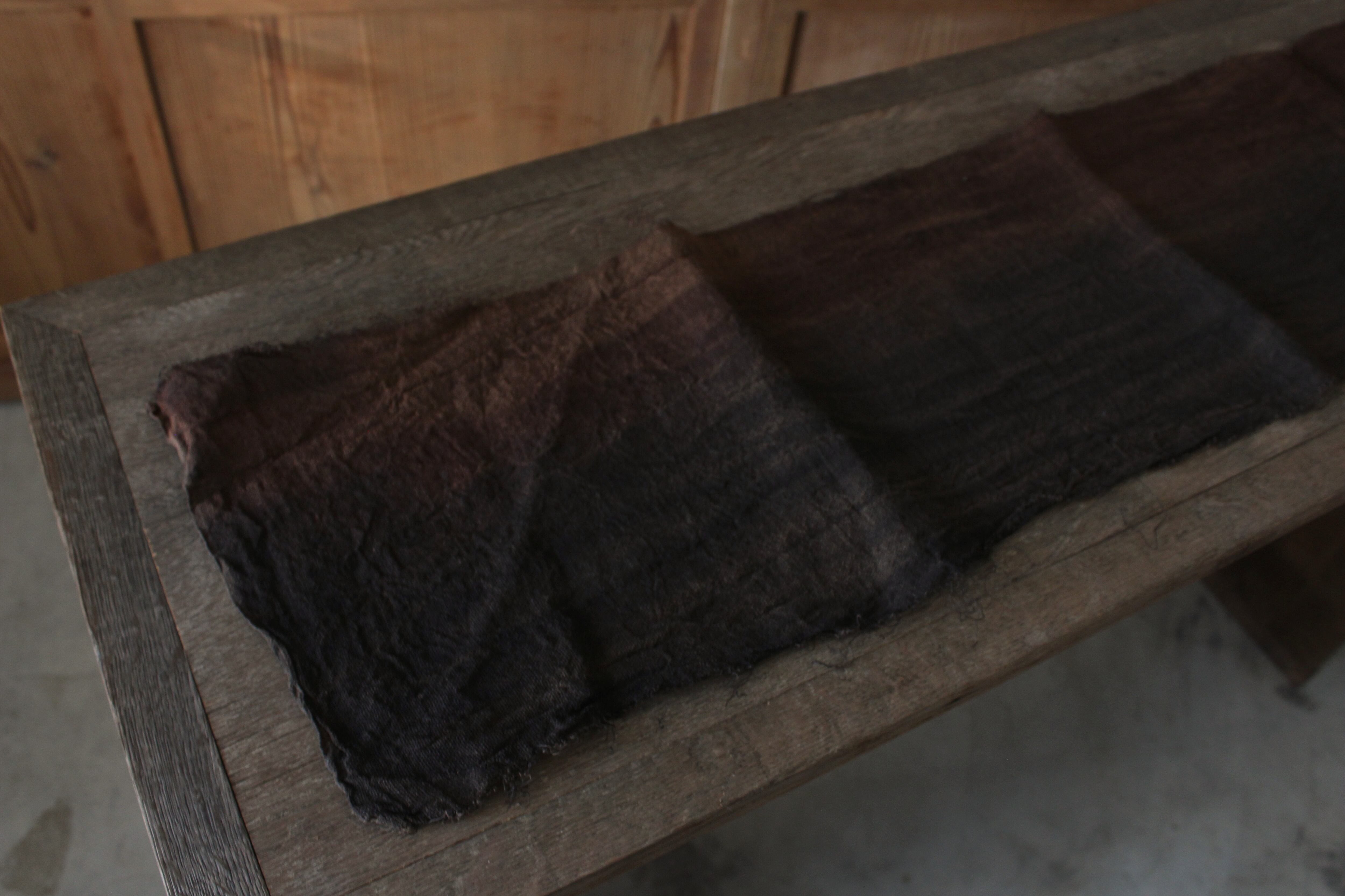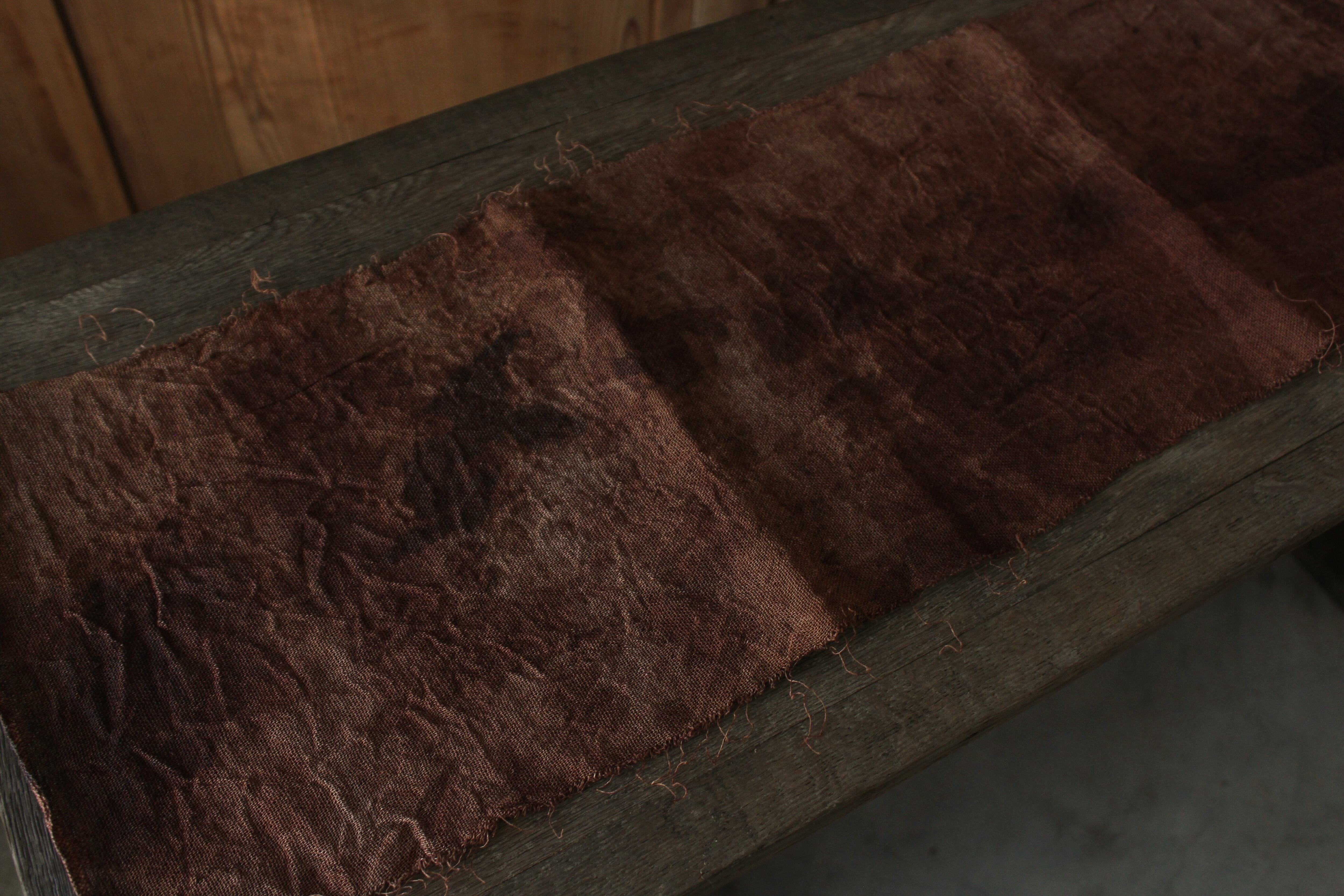 独自に染色を始められたaimai、田島さん。柿渋、藍、松煙、時には土に埋めたり。実験的なこともされながら、1点もの感覚で制作をされています。