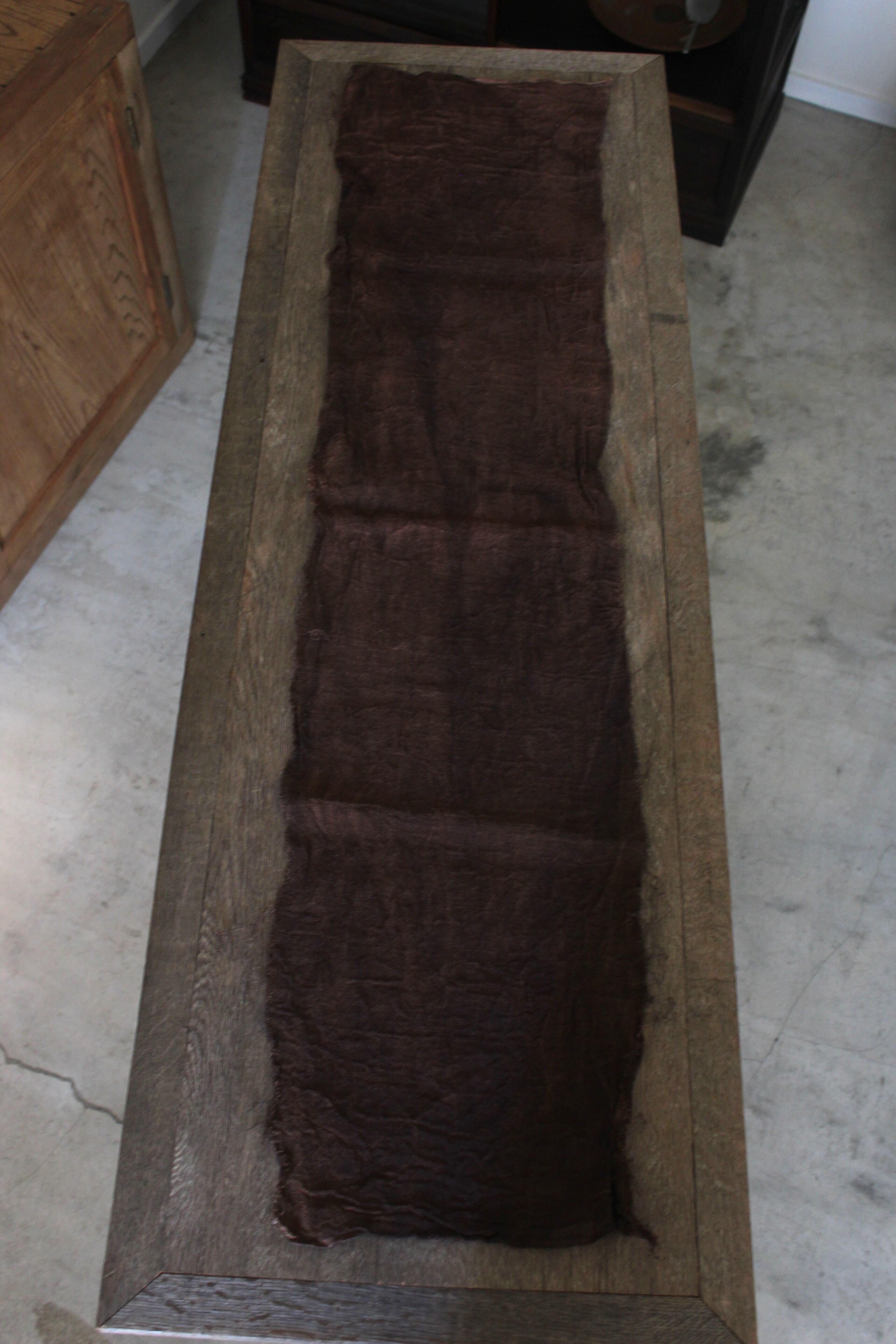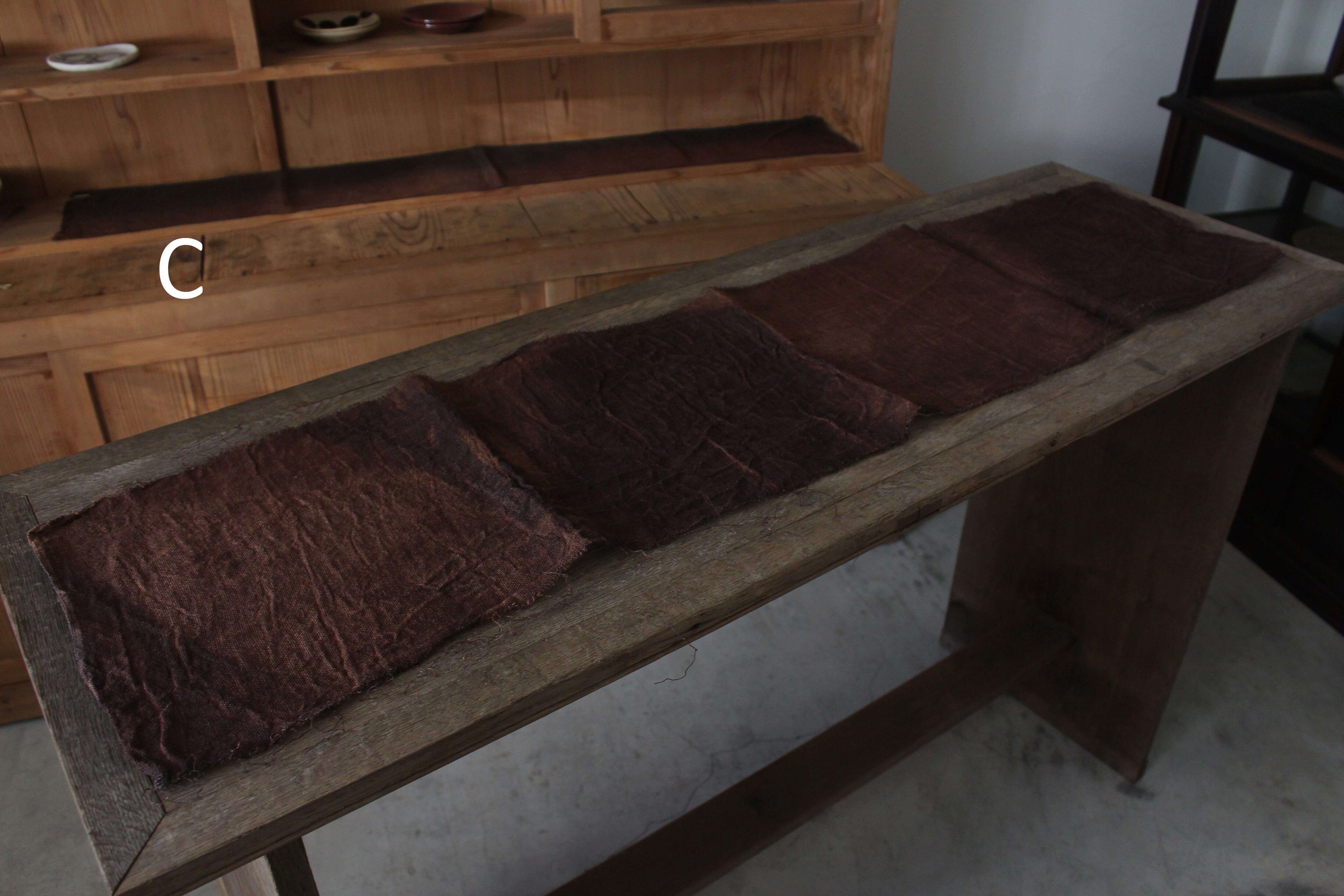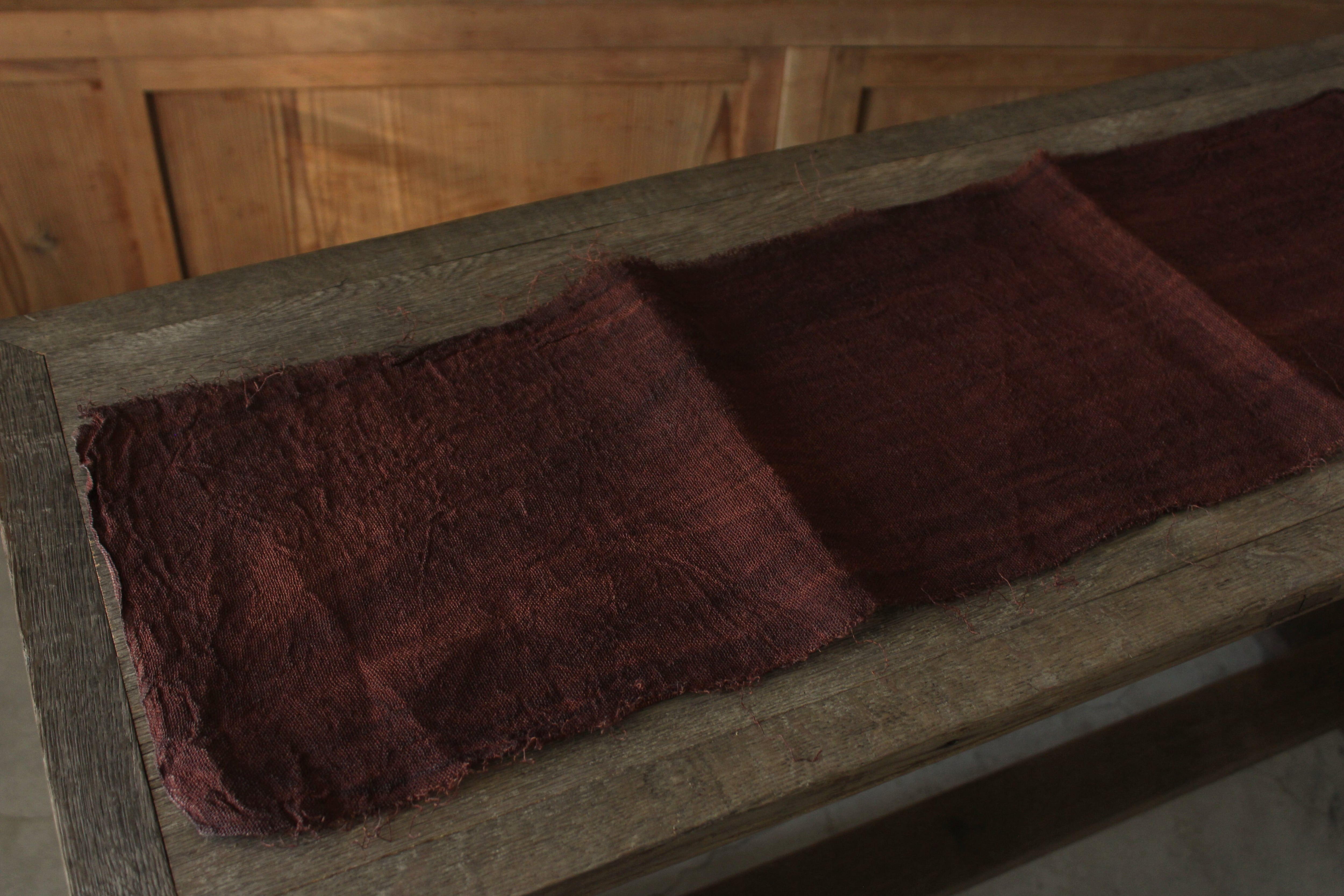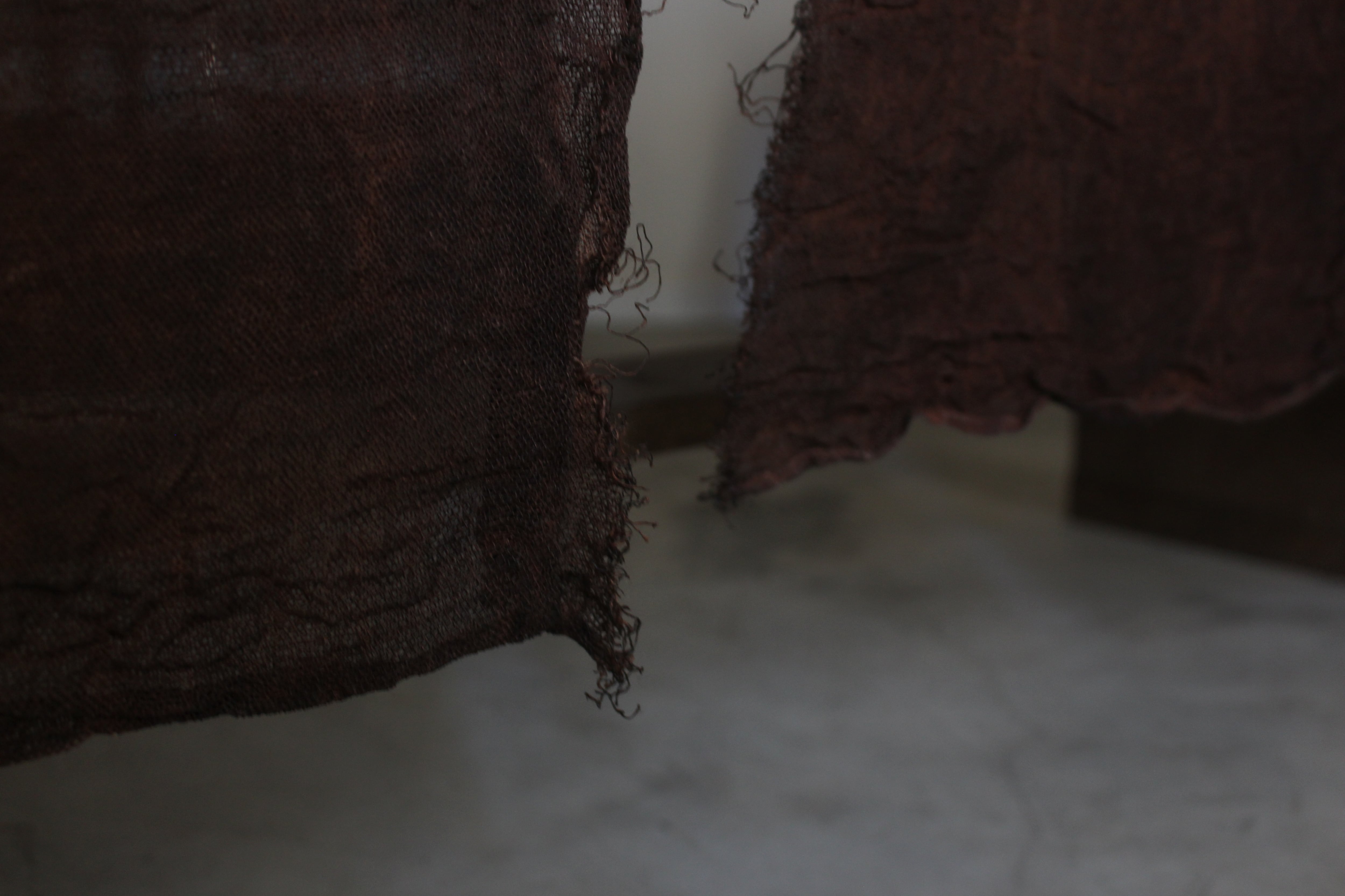 独自に染色を始められたaimai、田島さん。柿渋、藍、松煙、時には土に埋めたり。実験的なこともされながら、1点もの感覚で制作をされています。