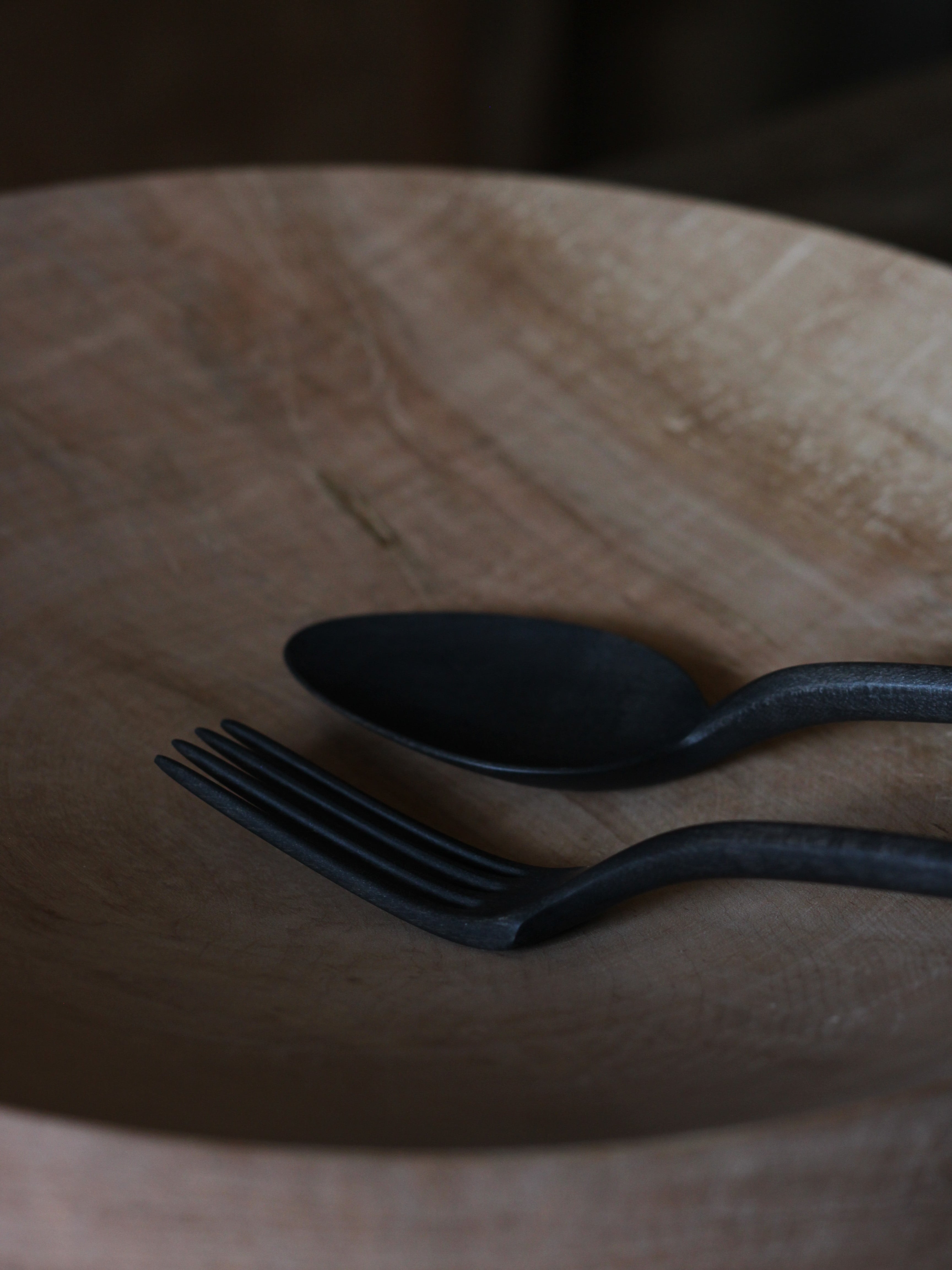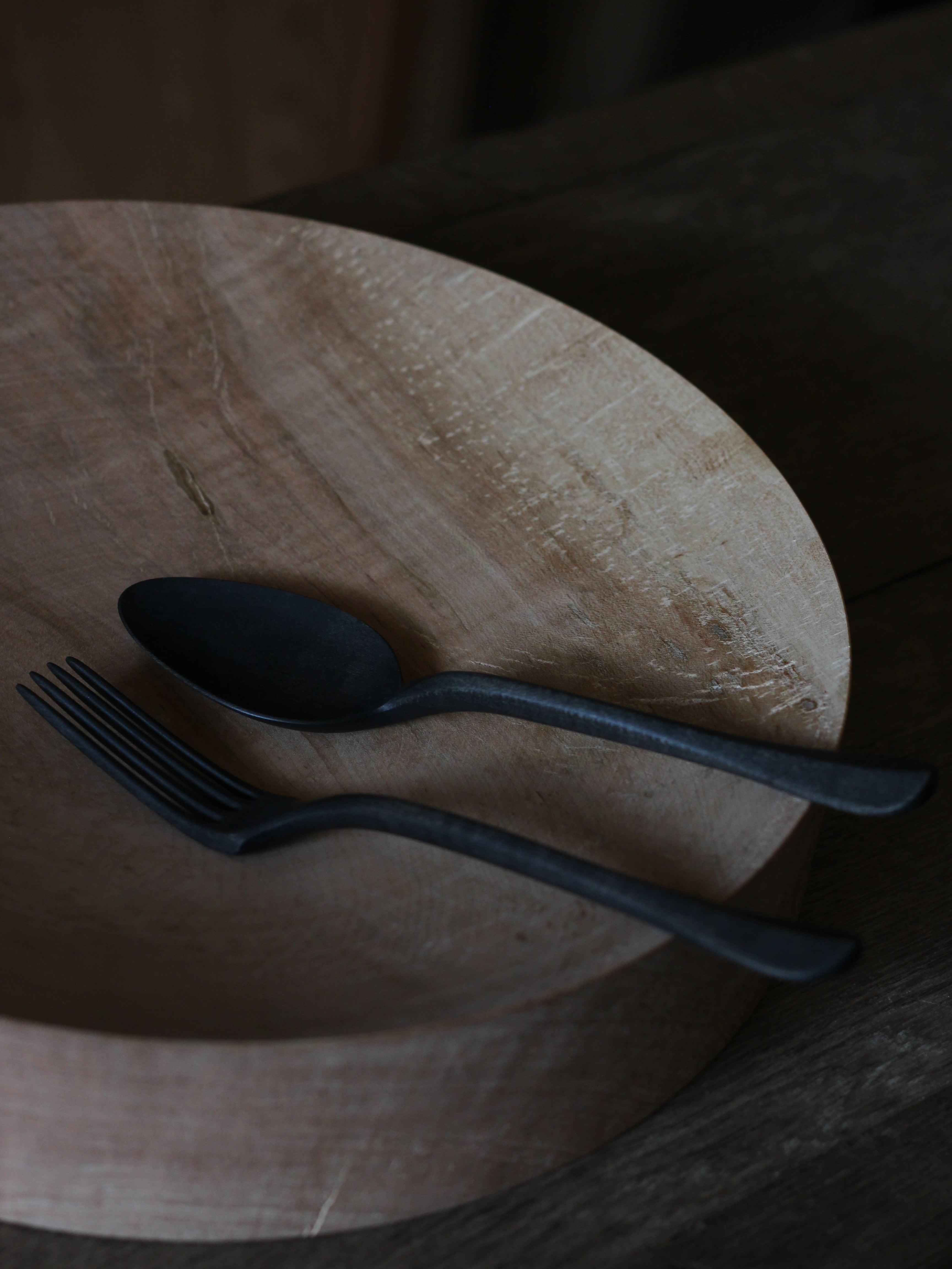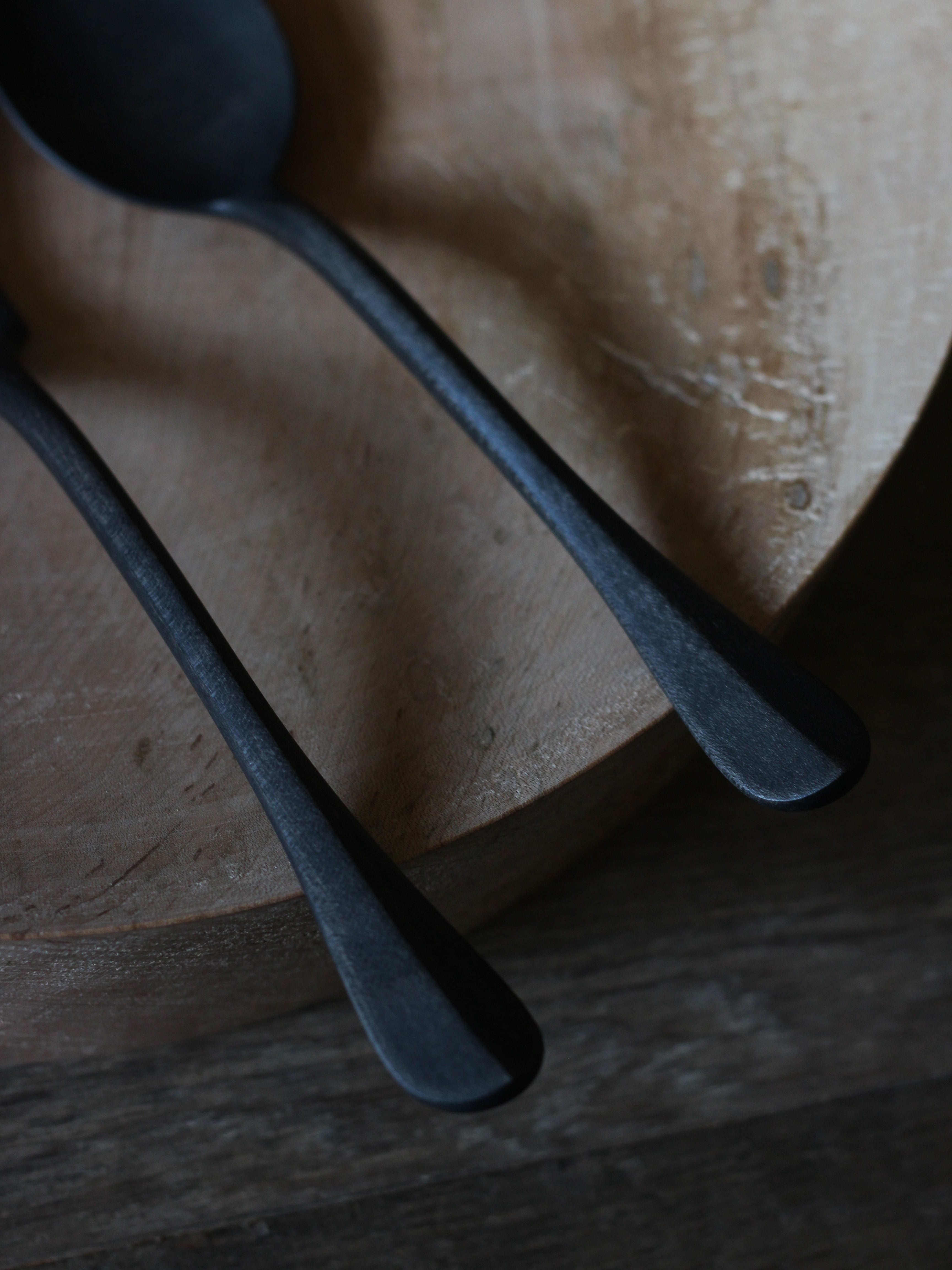 北山さんはアンティークがお好きで、デザインが頭の中に入っていると仰っていました。こちらのカトラリーもその雰囲気を纏っている作品です。