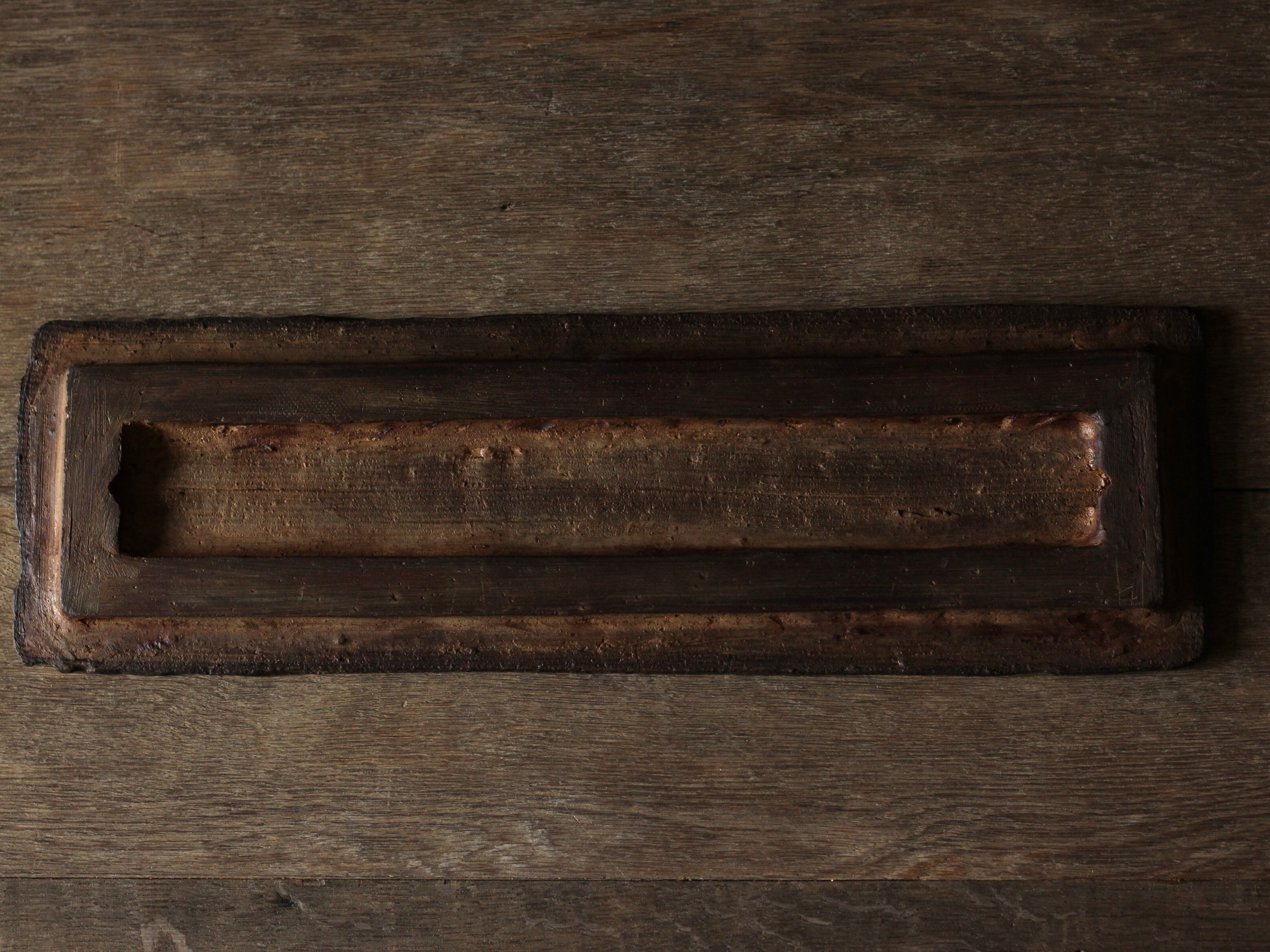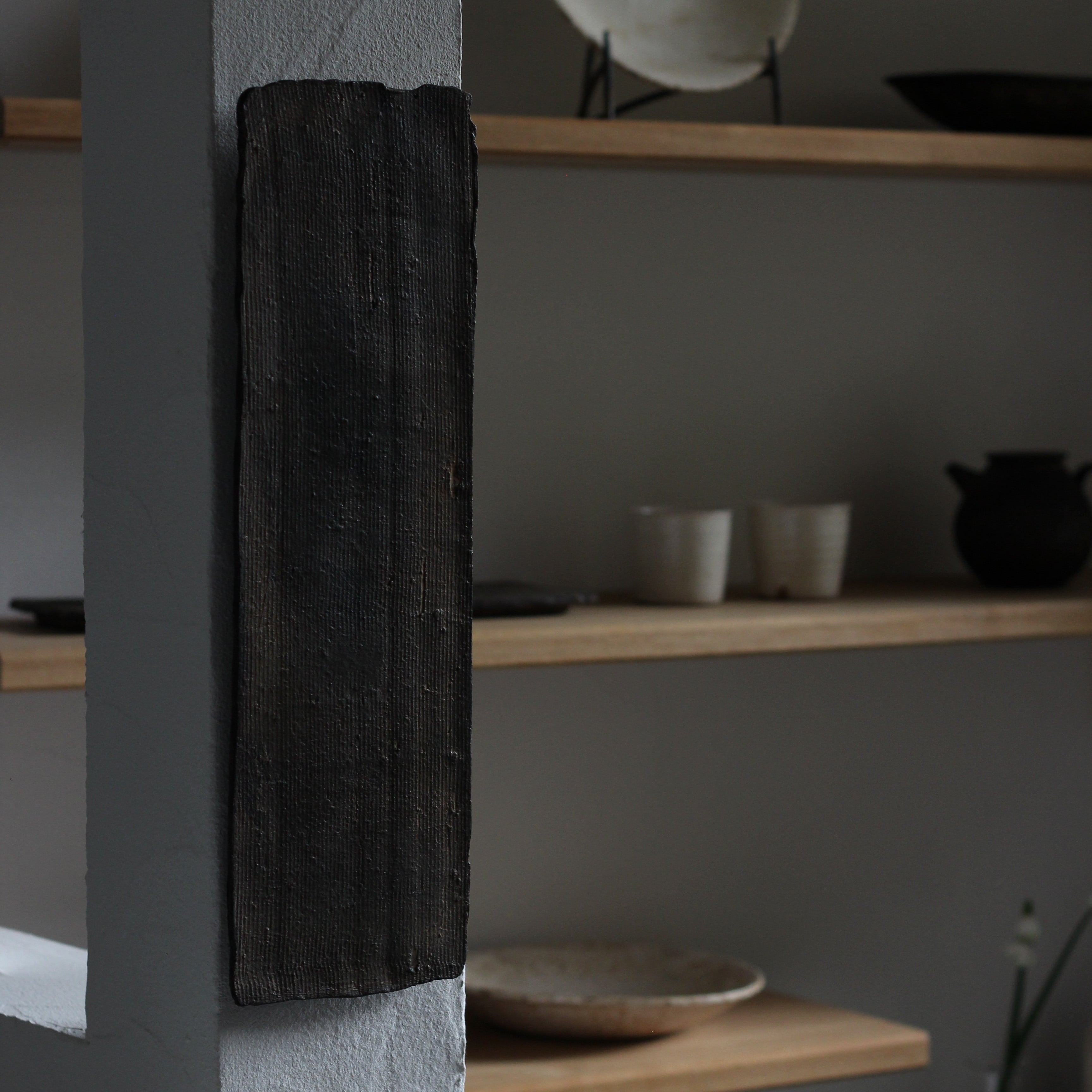 壁掛けにもできる台皿です。花器を飾るのにアクセントで置いていただいたり、お茶の席で茶杯を並べていただいたり、お刺身やサンマなどを盛っていただいたり…さまざまなシーンでお使いいただける作品です。