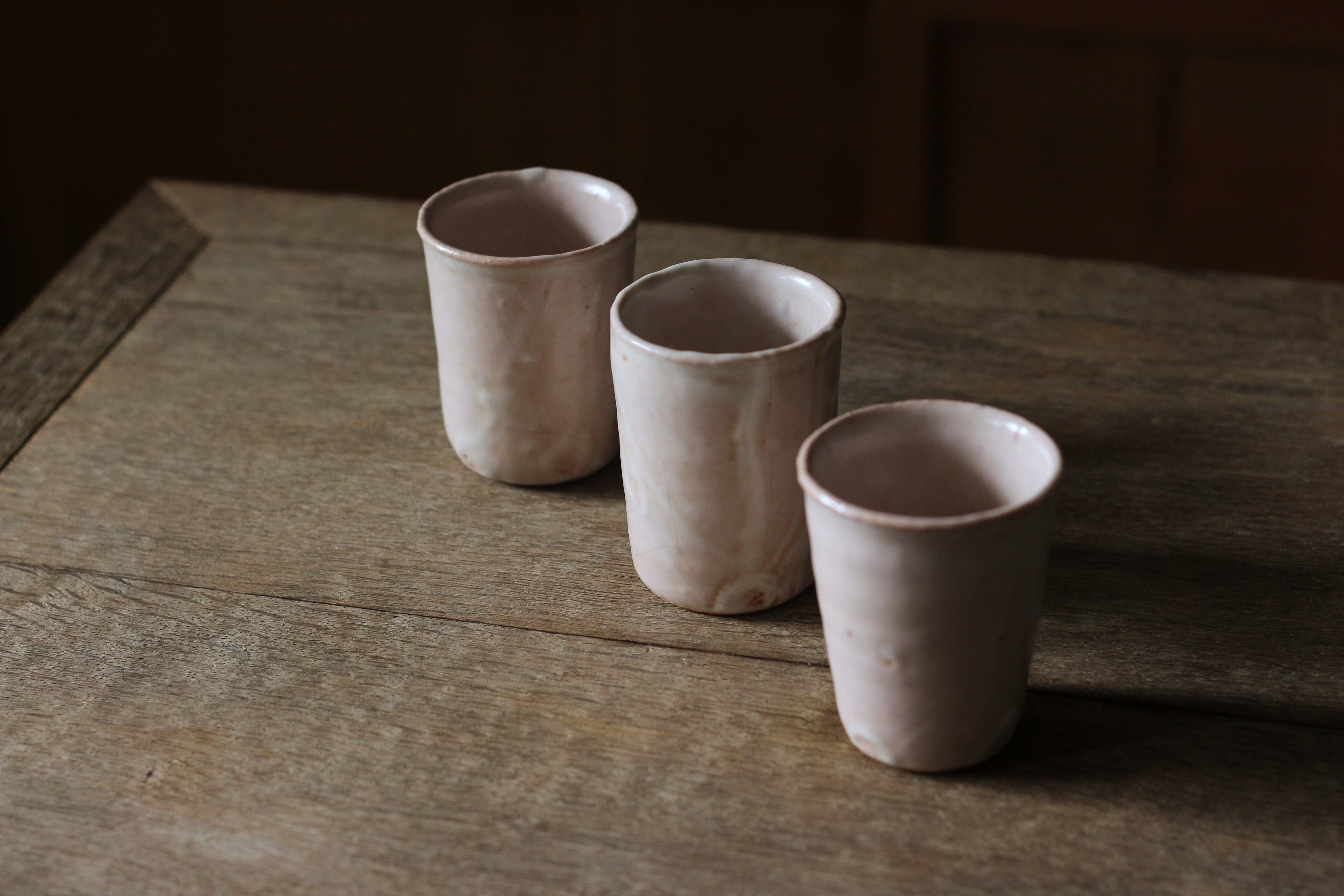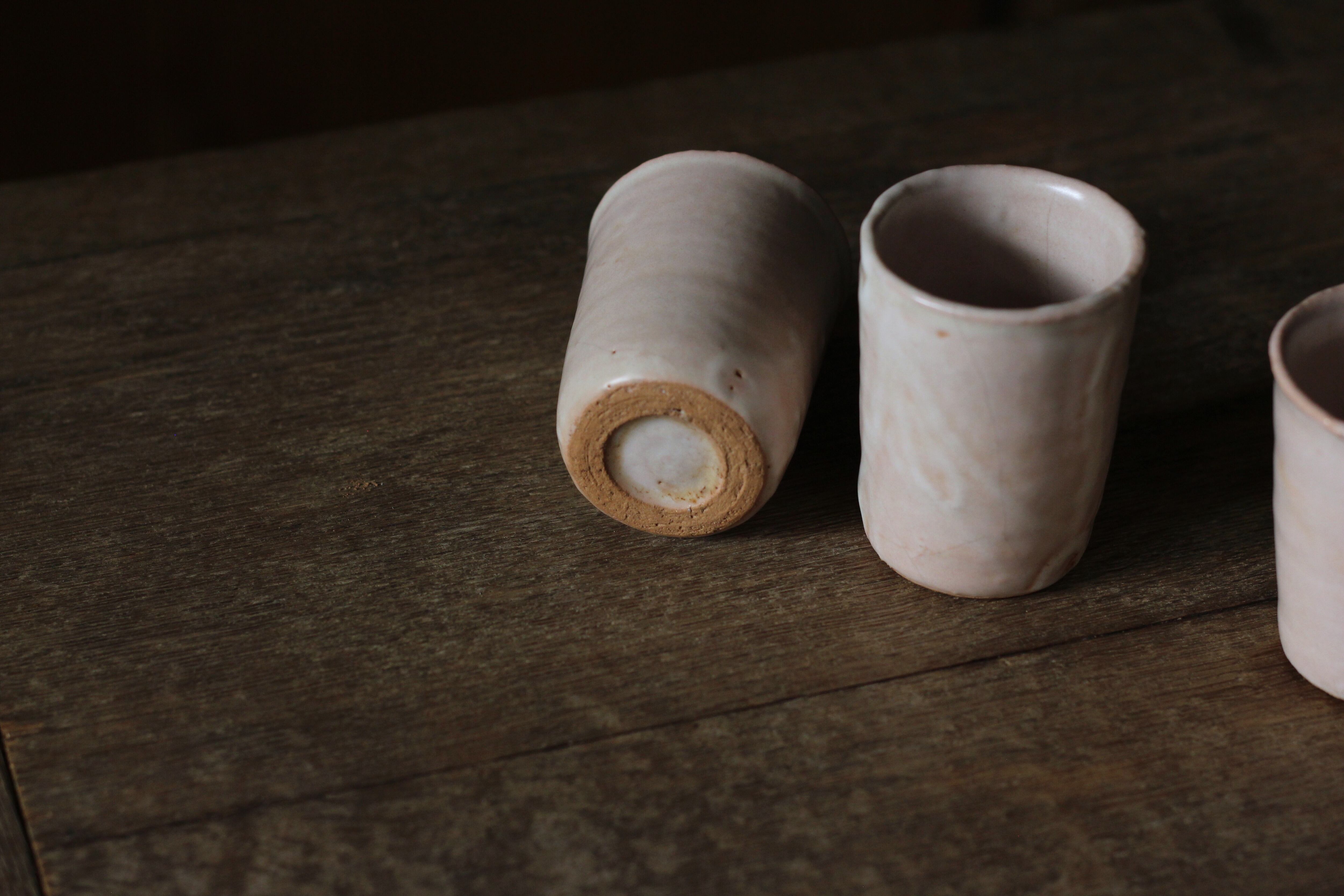 ・低温で焼いた陶器に拭き漆をしています。低温だと水がしみやすいためです。とはいえ、完全防水ではないので、経年変化がよくわかると思います。