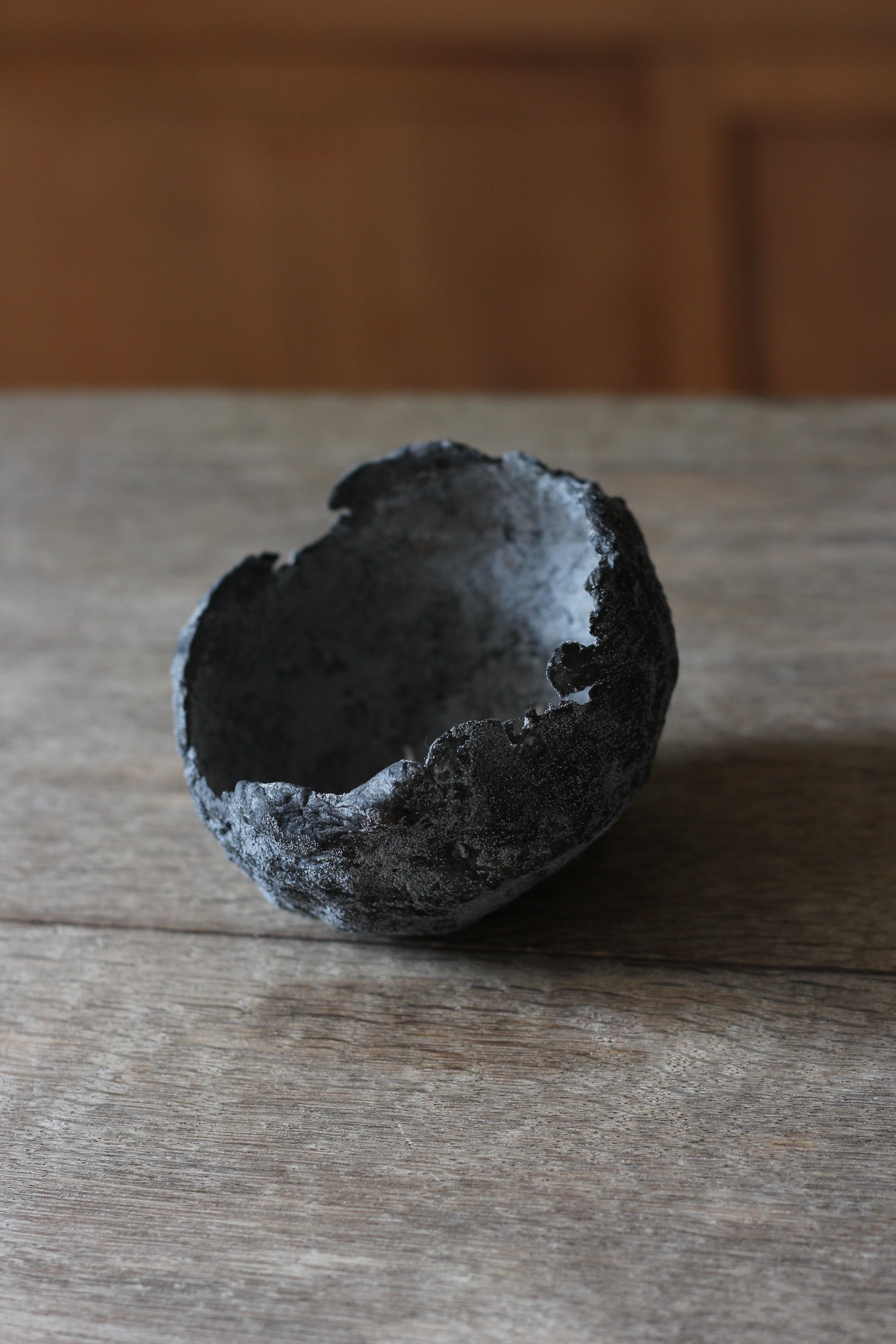 一度水に漬けて戻し、型などで成形して乾かす。最後に黒墨や藍、時には柿渋、鉄錆や砂鉄などを混ぜて着色されています。