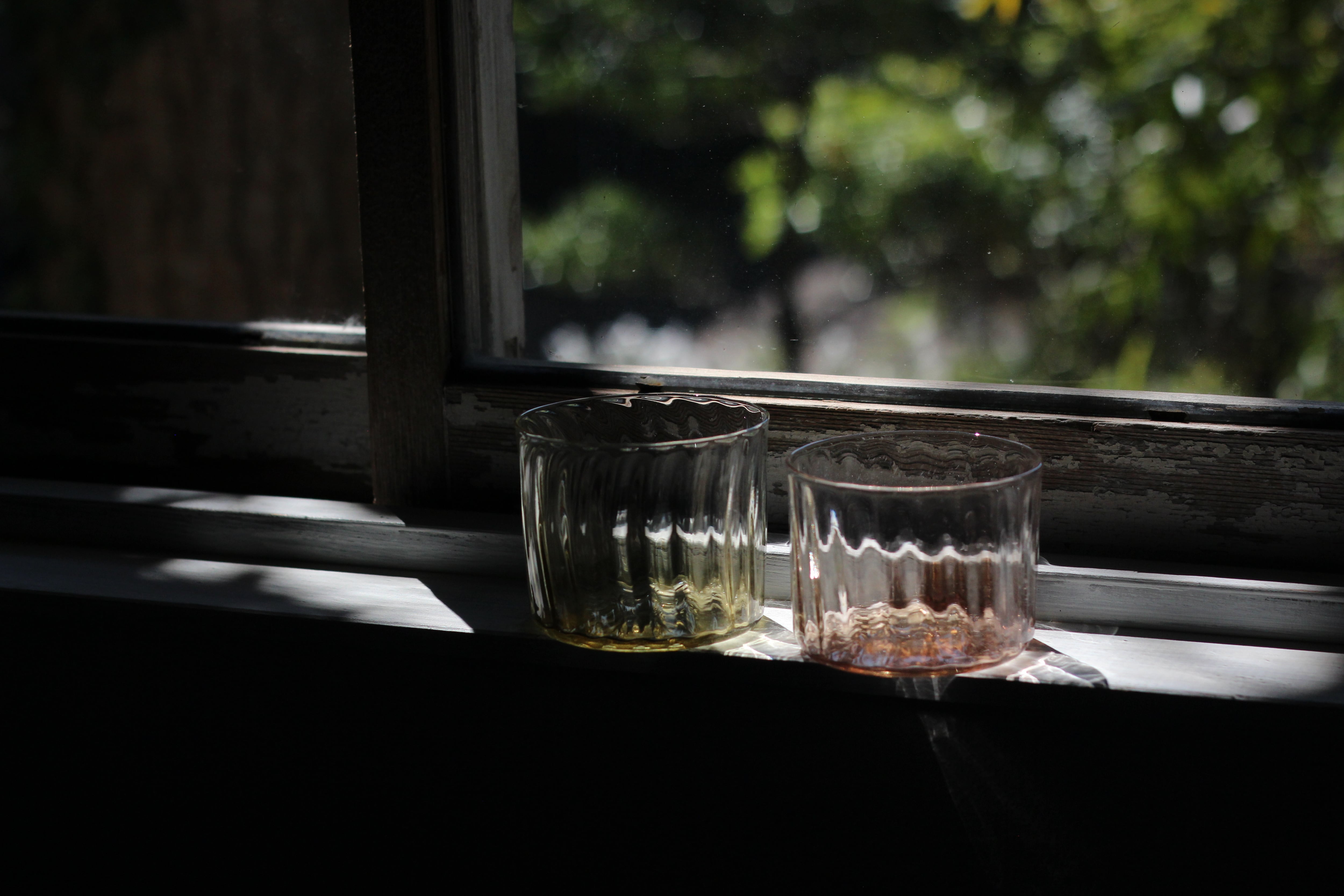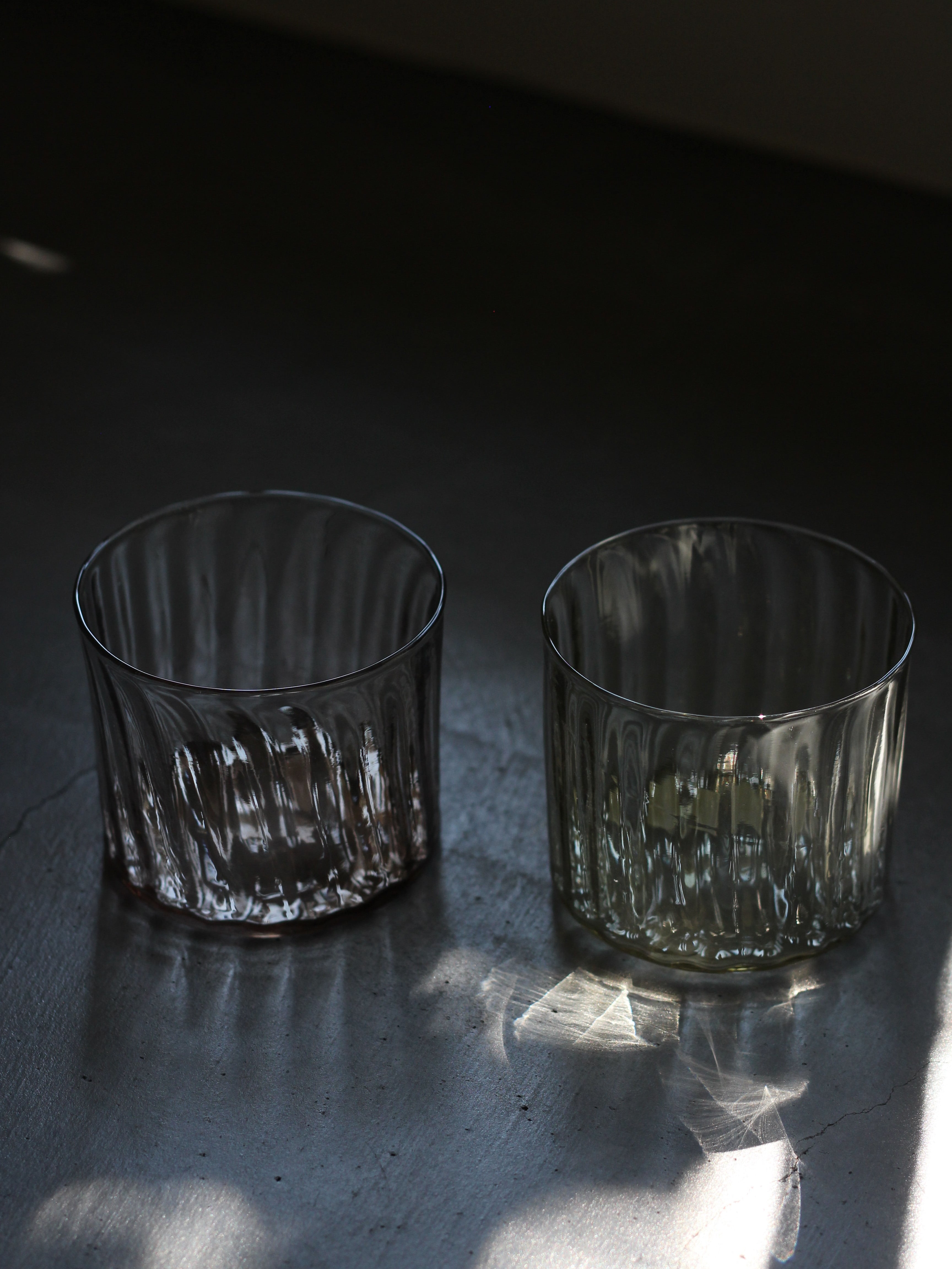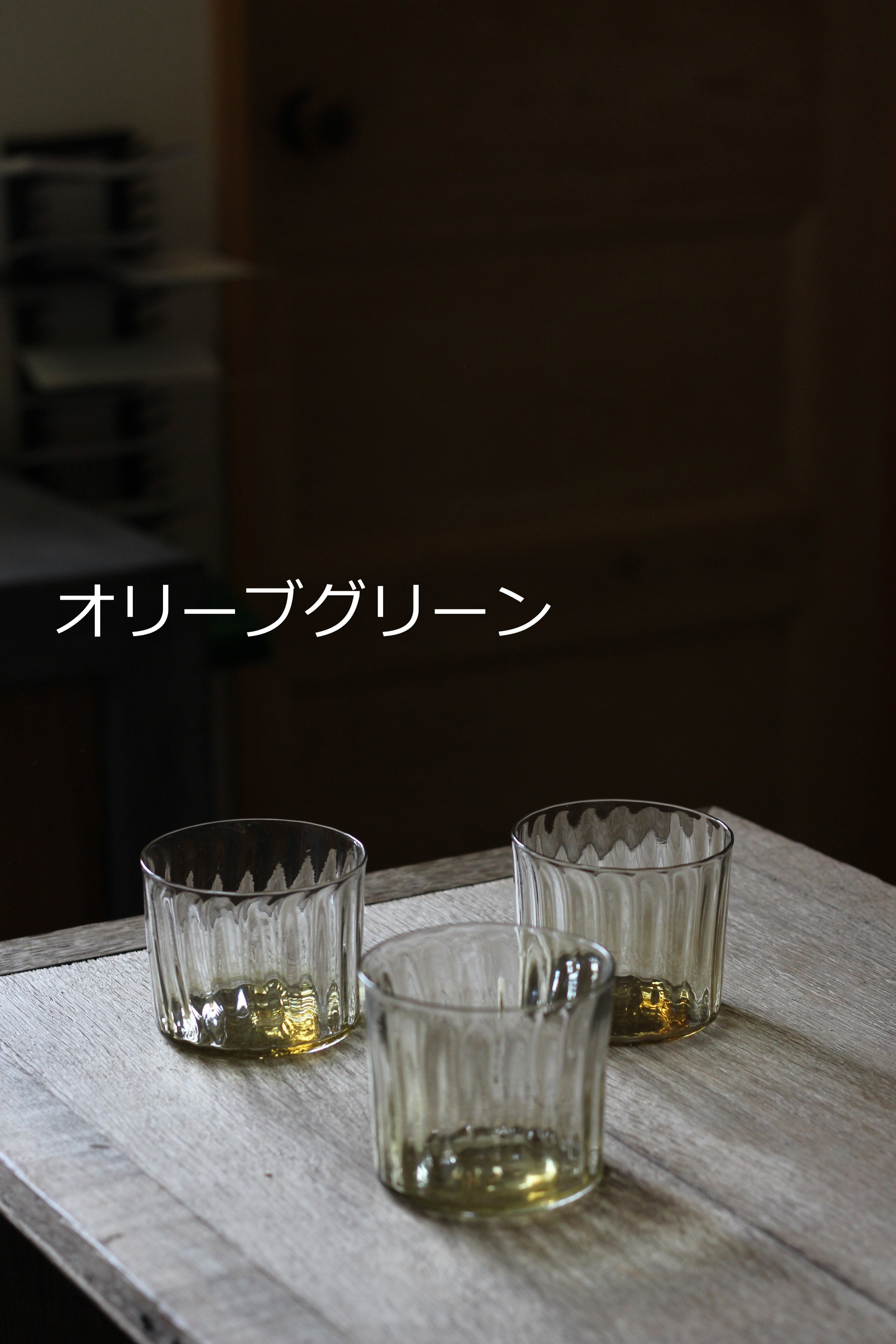 オリーブグリーンのグラスの方が、赤よりも高さがあります。