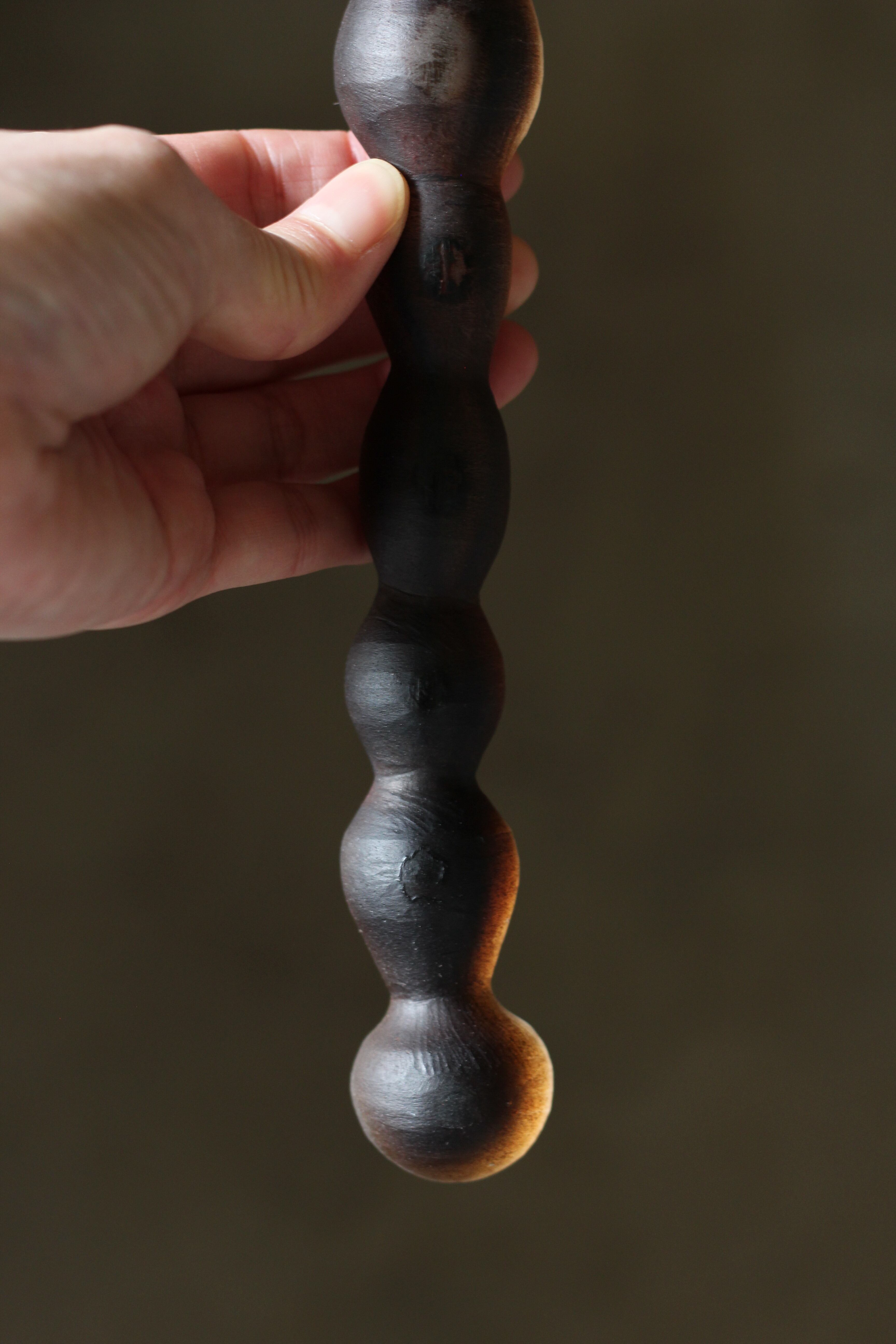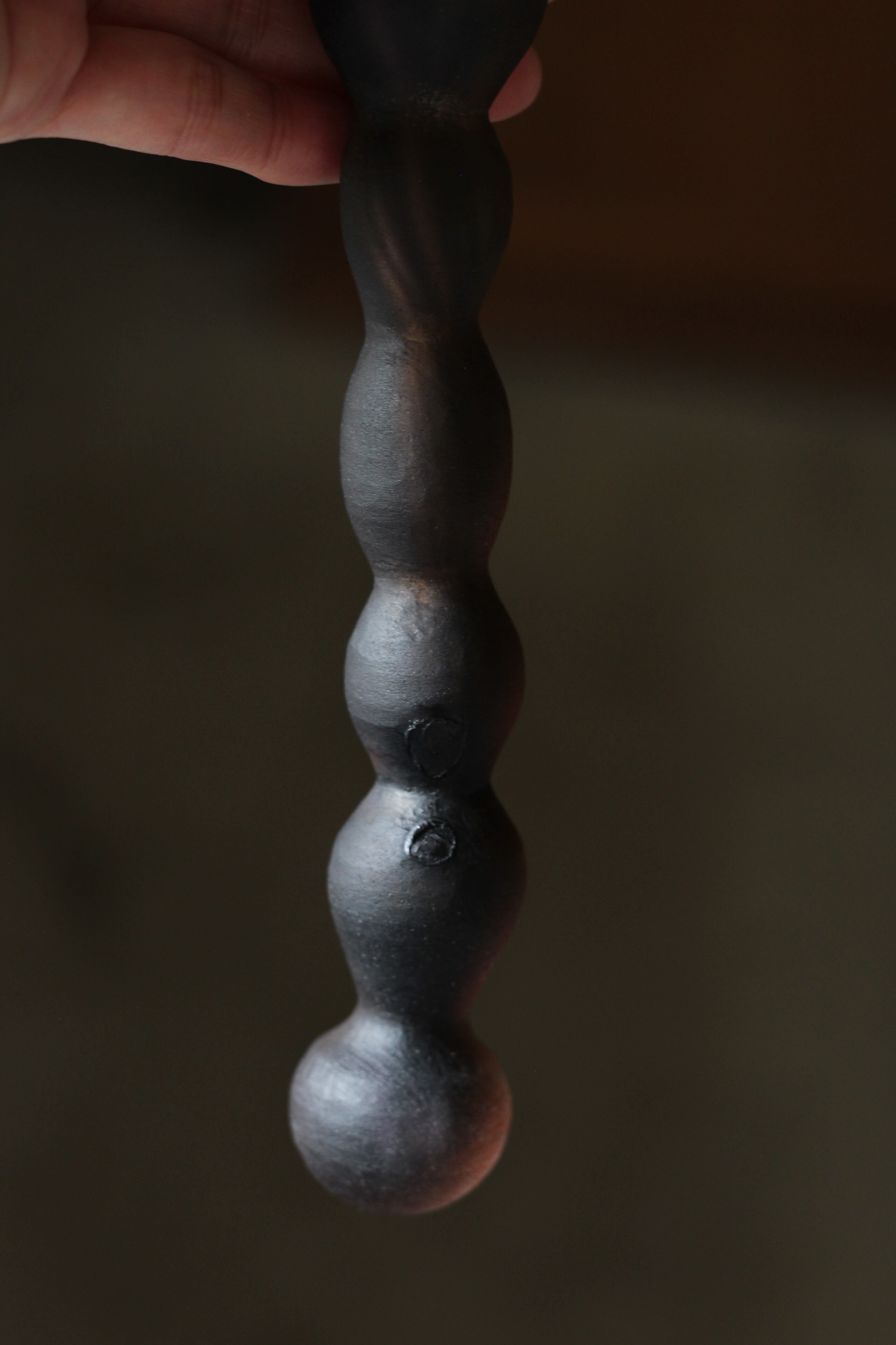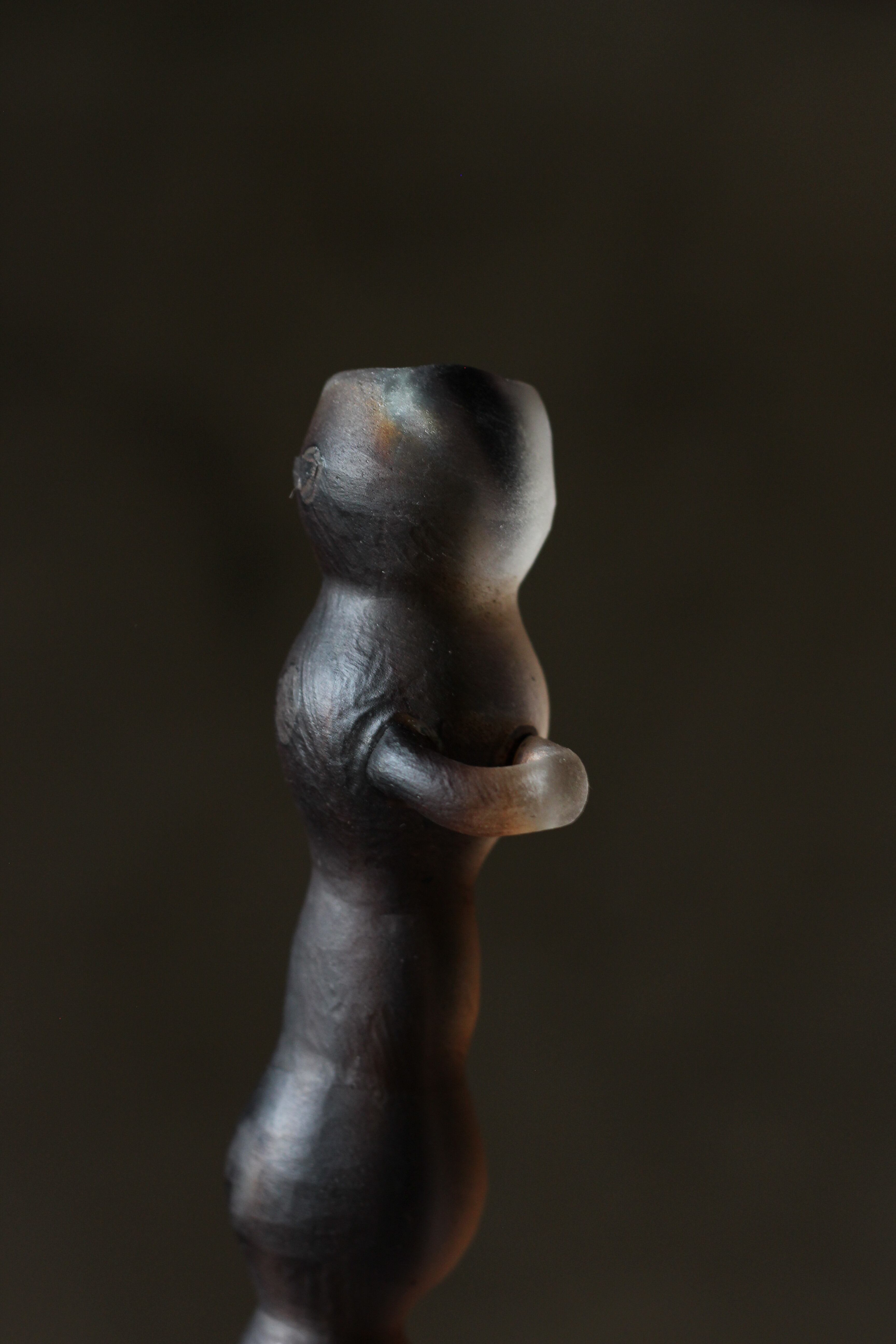 ガラスの表面に蝋を焼き付け、表面を燻らせています。その曖昧で不確かな焼き跡に、作為から離れた自然の風景を観ることがあります。燃えついた「跡」が誰かの心象風景に響く、そんな情緒的なモノを作れたらと思っています(境田さんより)。