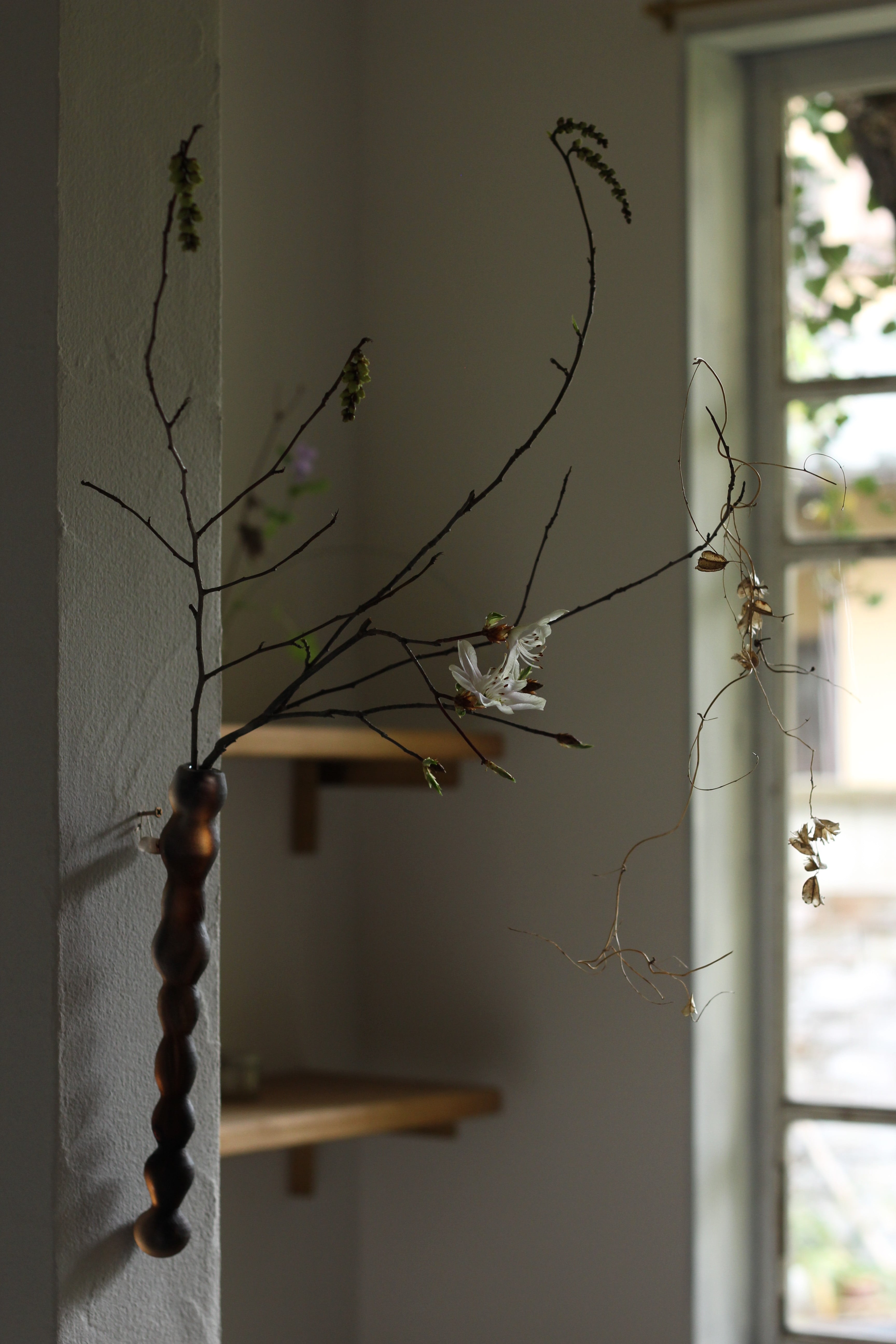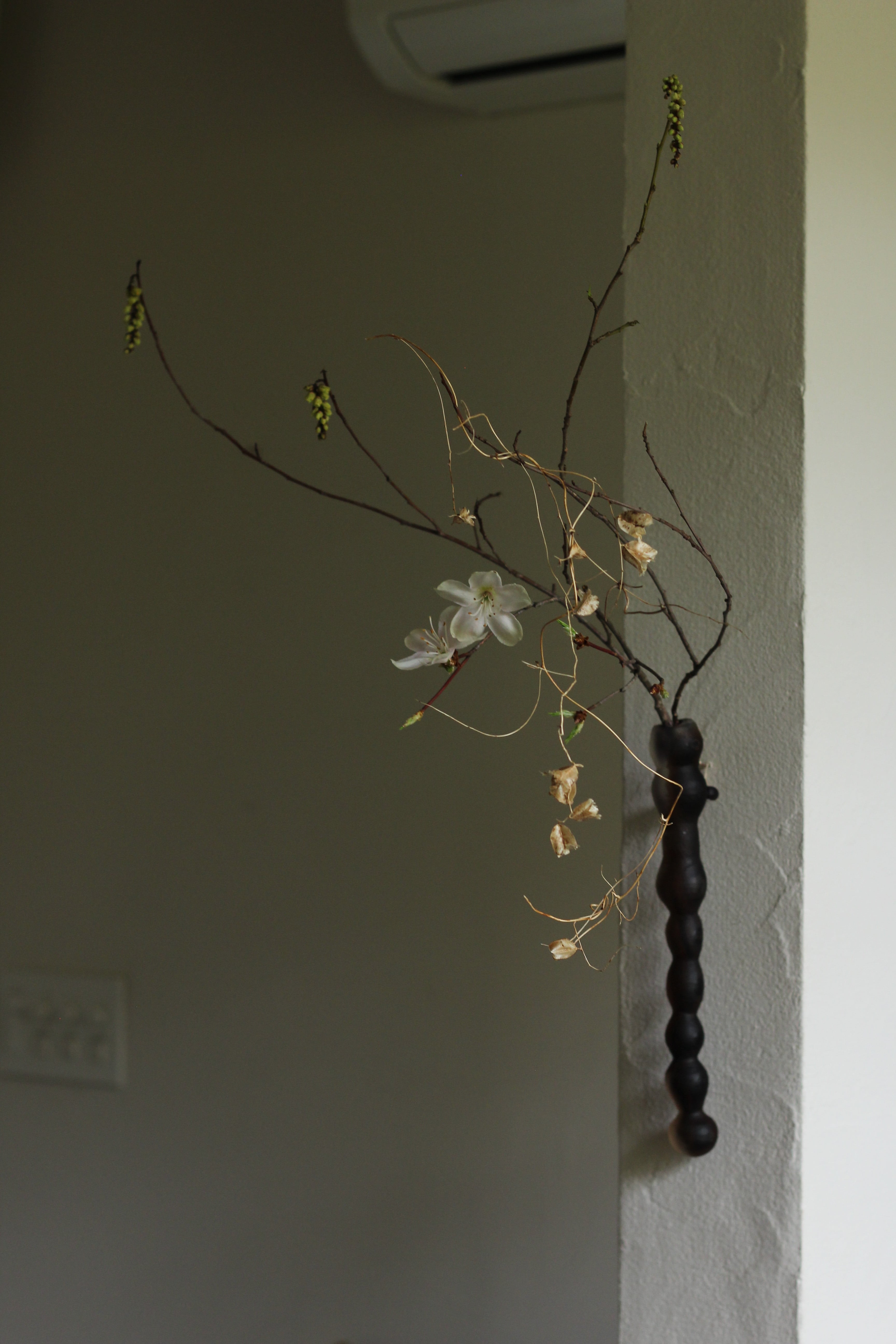 お団子のような掛け花。中々ない形でユニークですが、花を生けると違った一面が見えるのでそれがまた魅力的です。