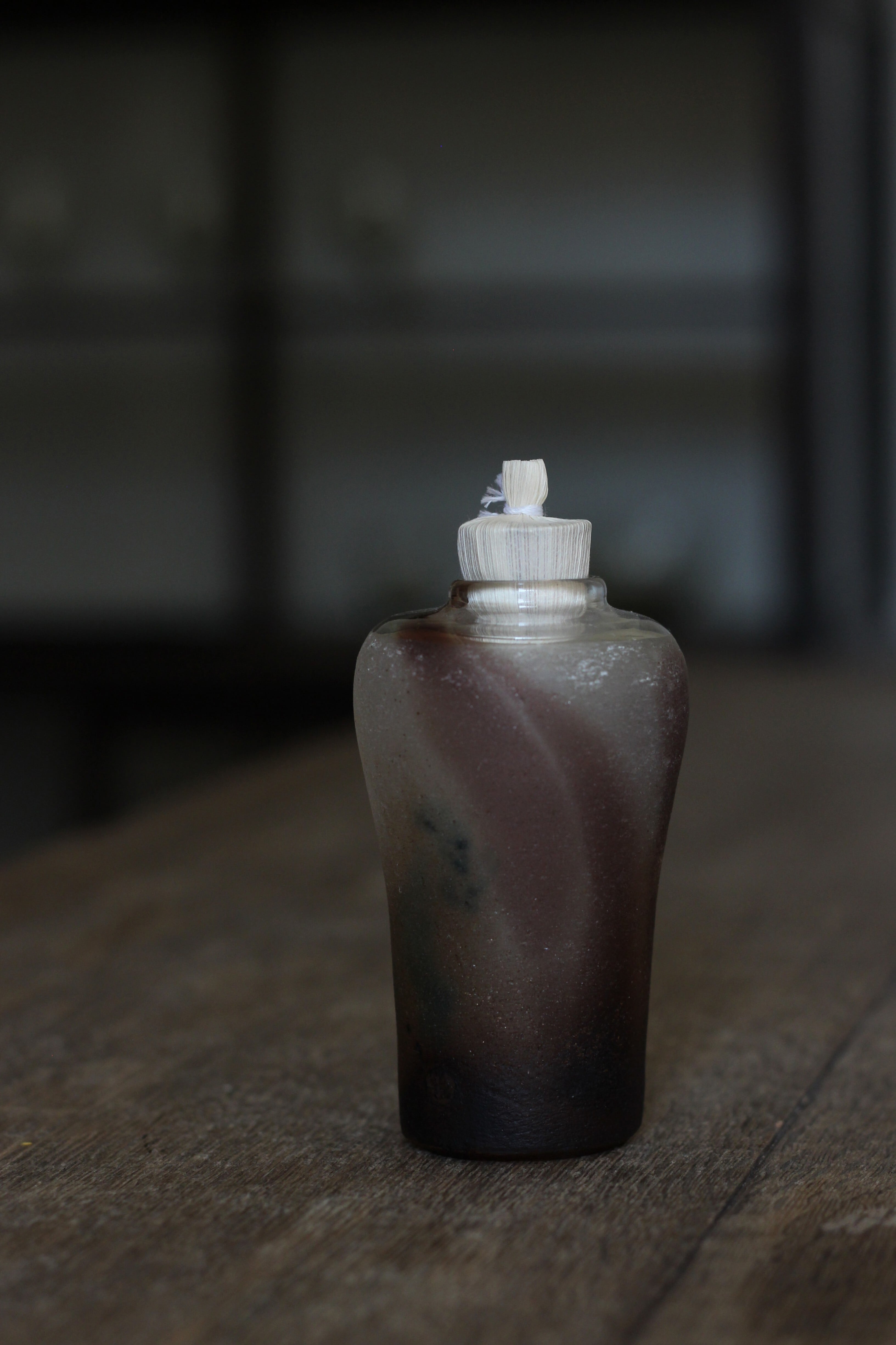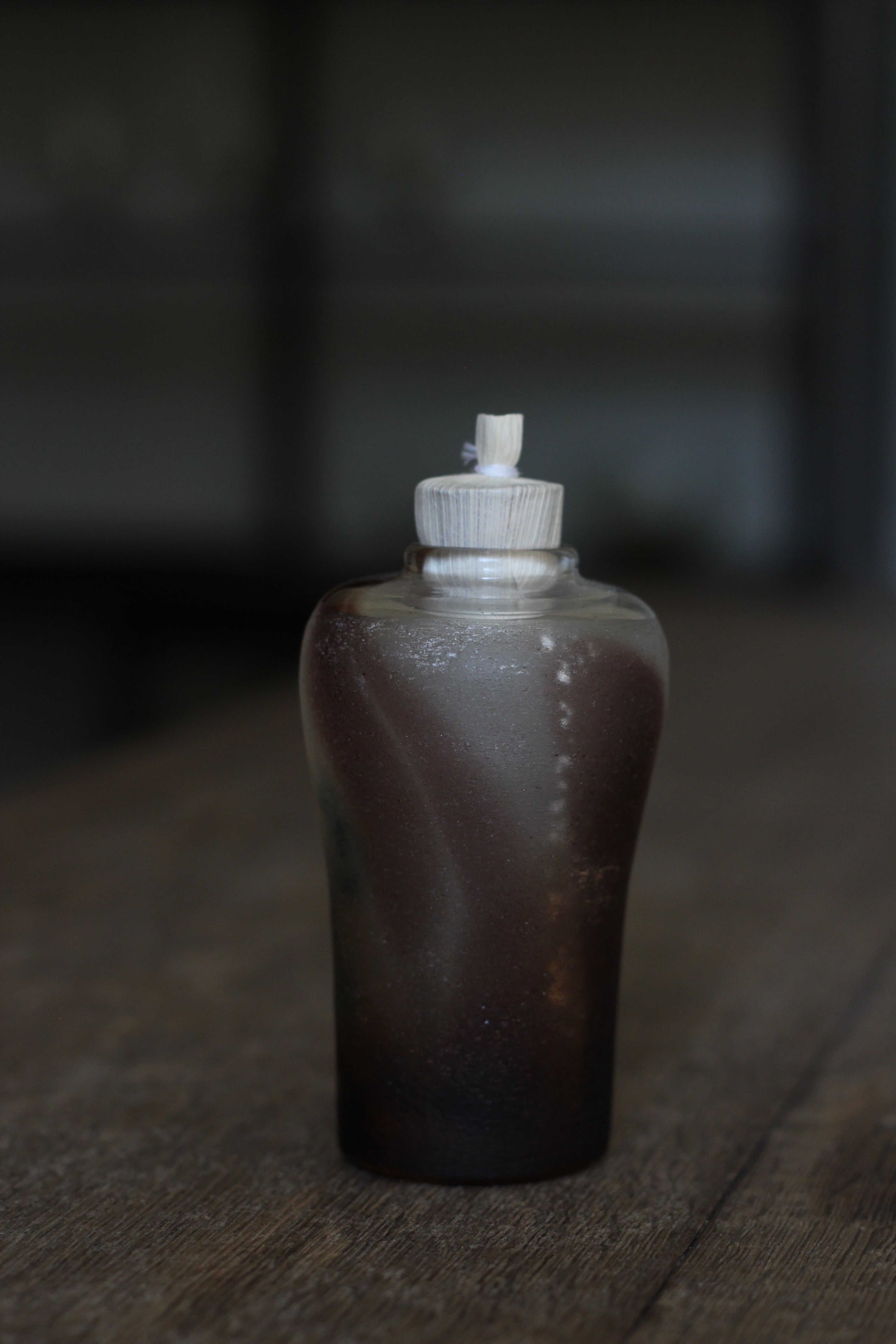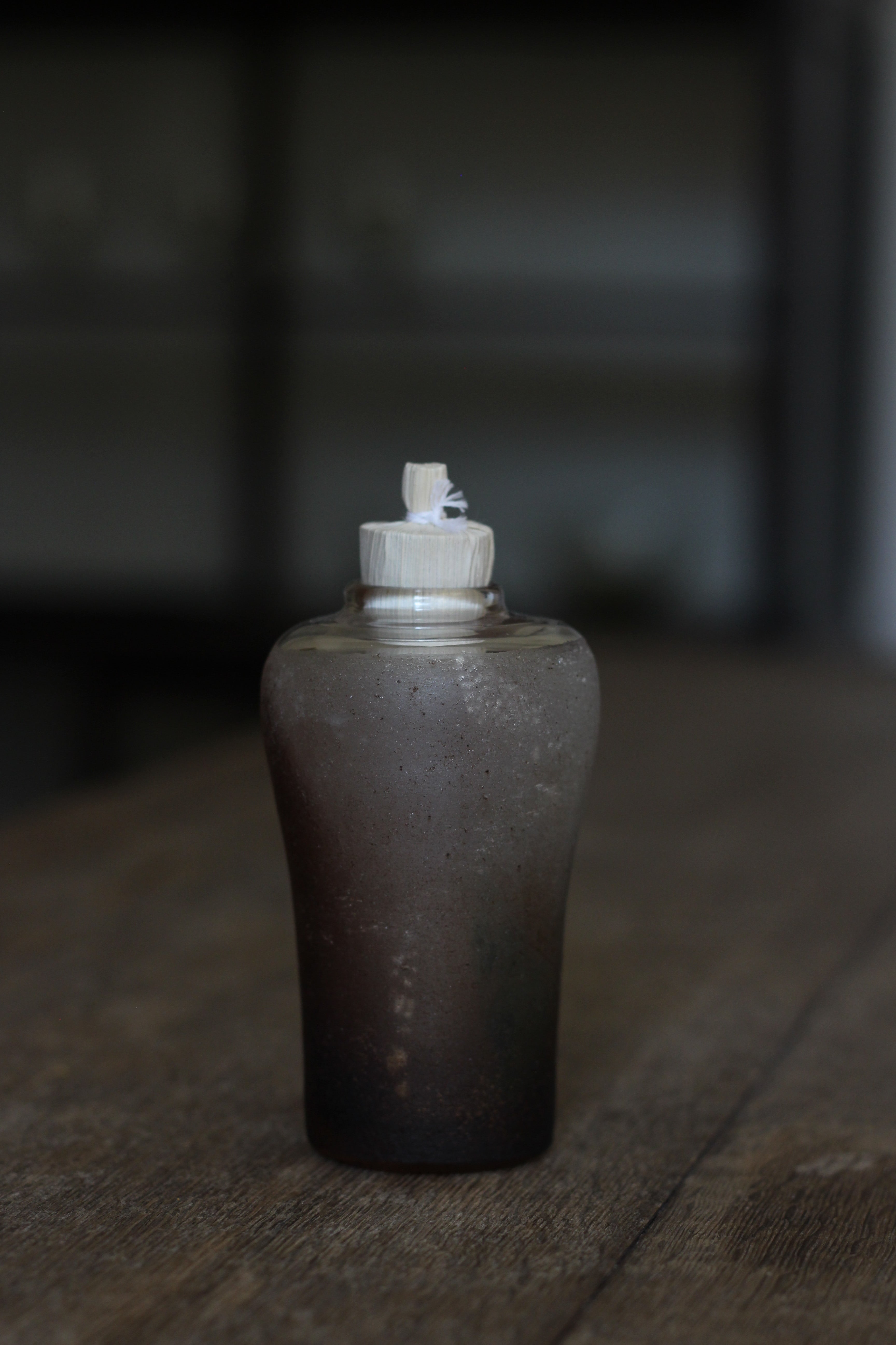 茶道で使われる振出ですが、オブジェとして飾っても素敵です。蓋も境田さんの自作で、トウモロコシの葉を乾燥させたものを使用しています。