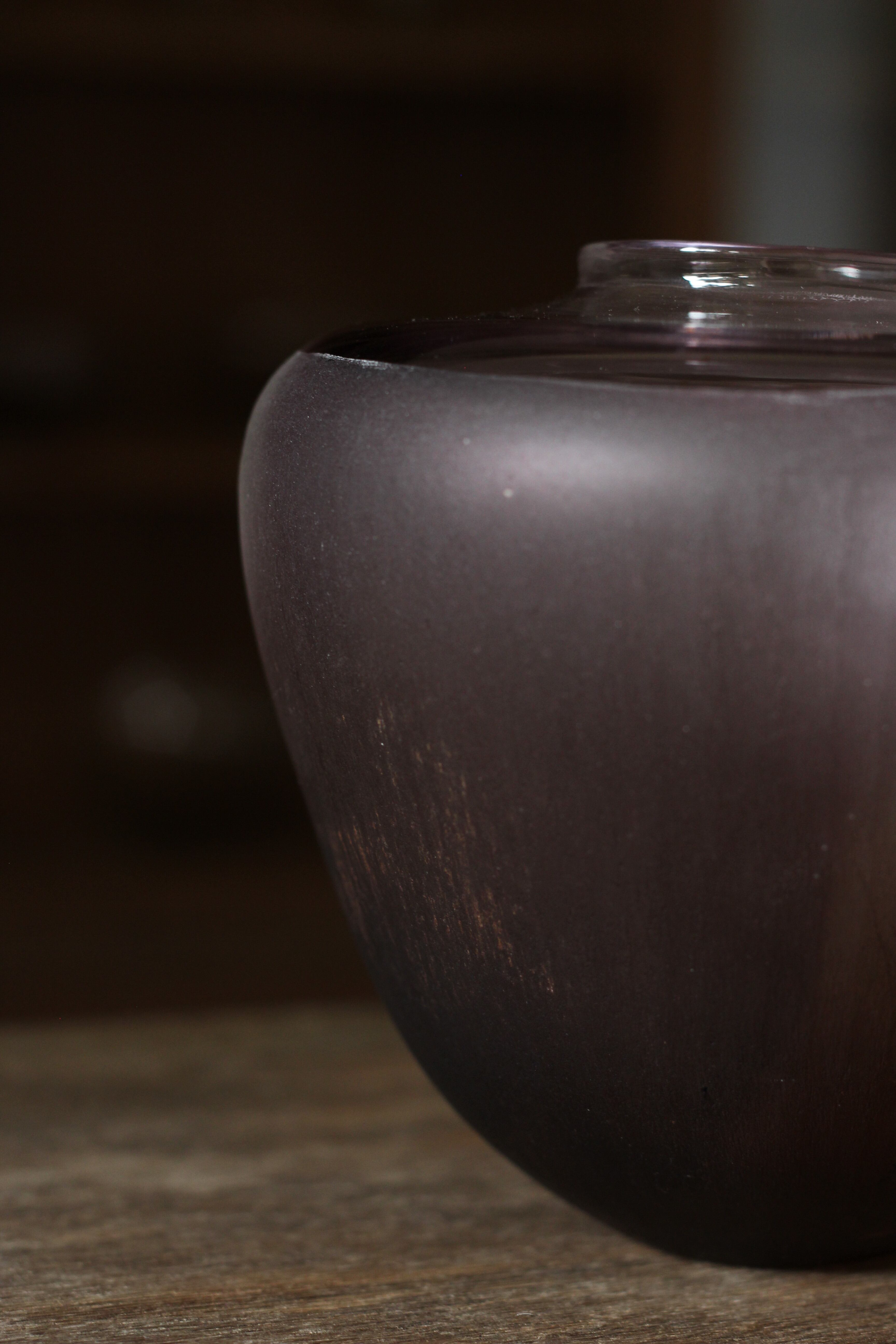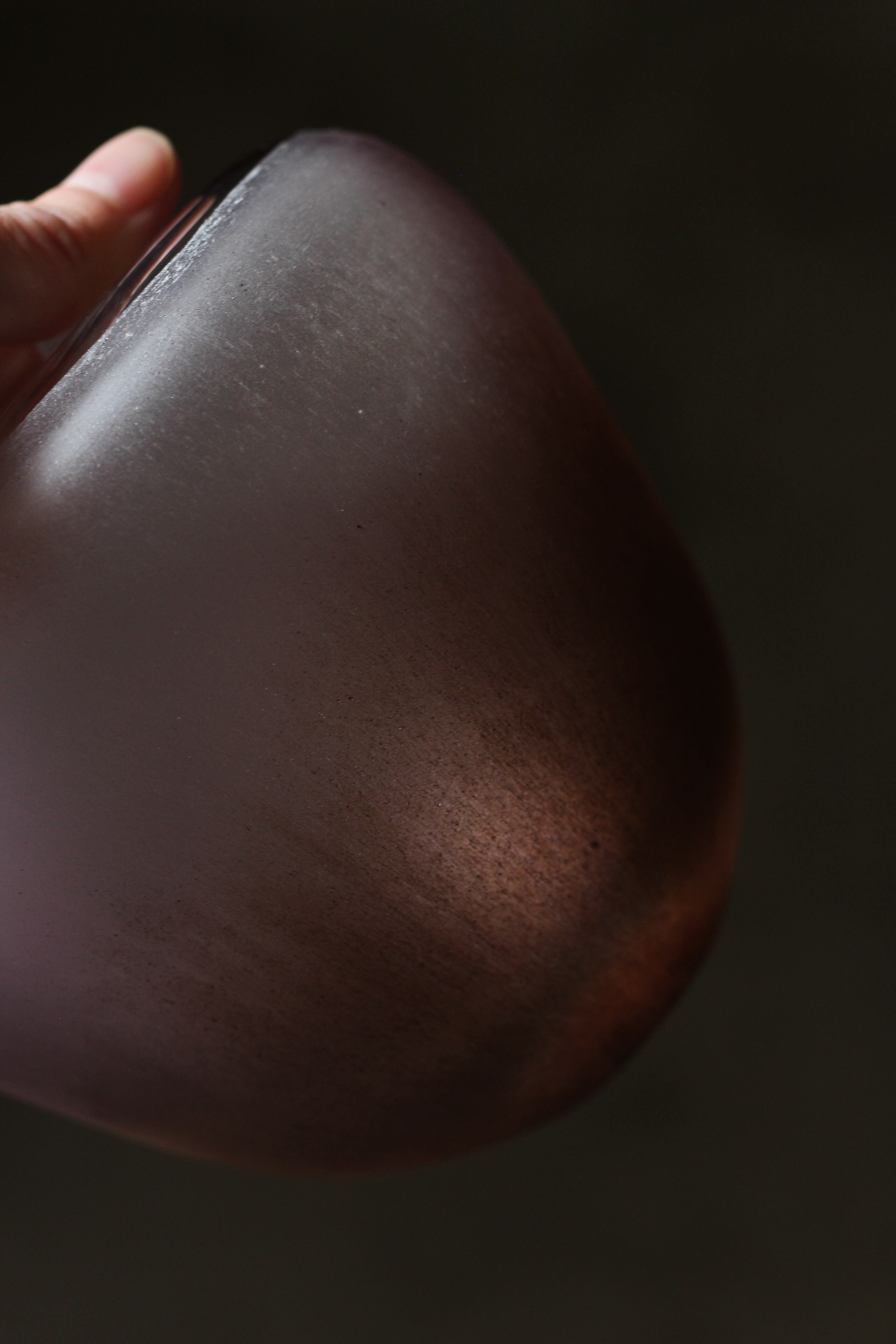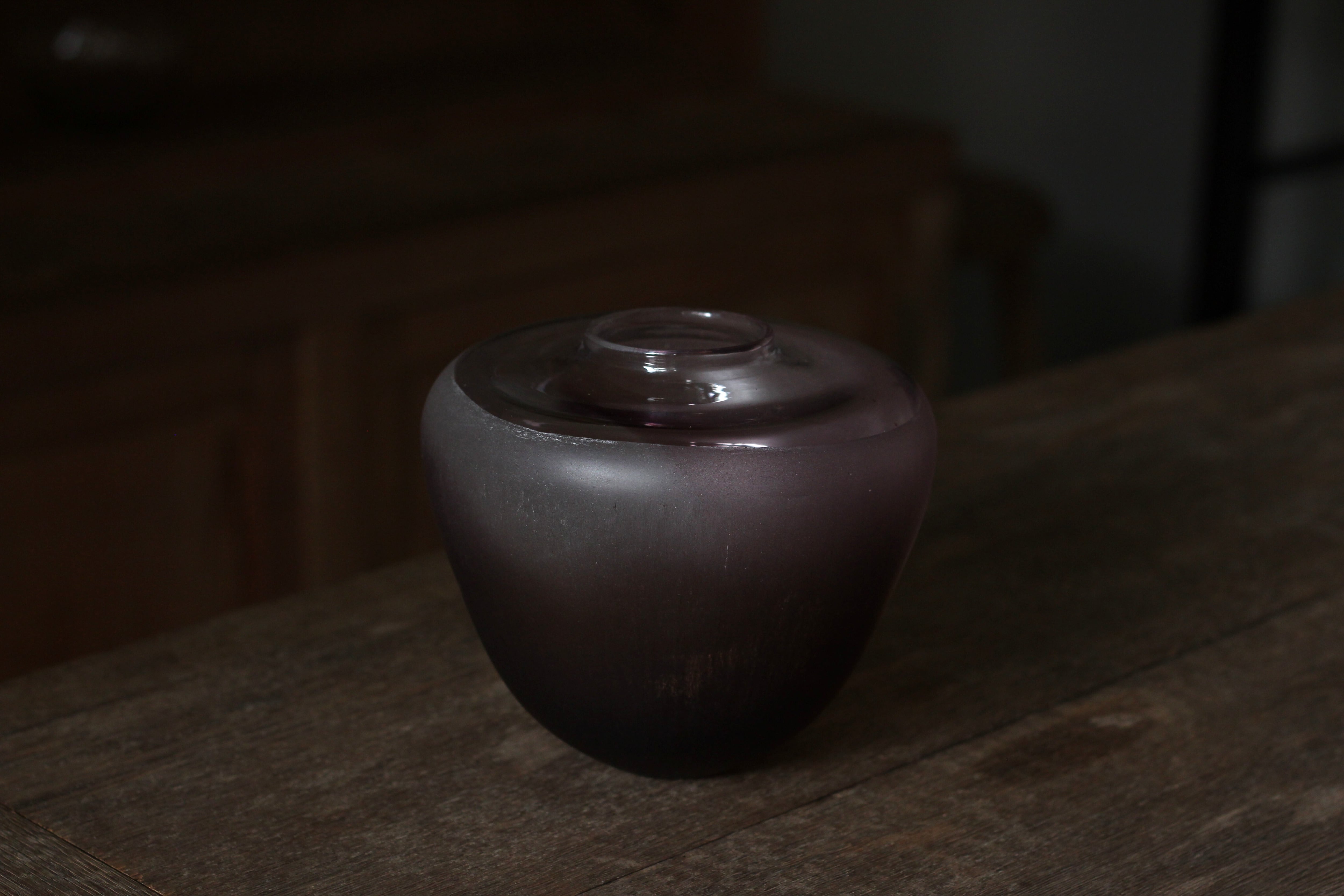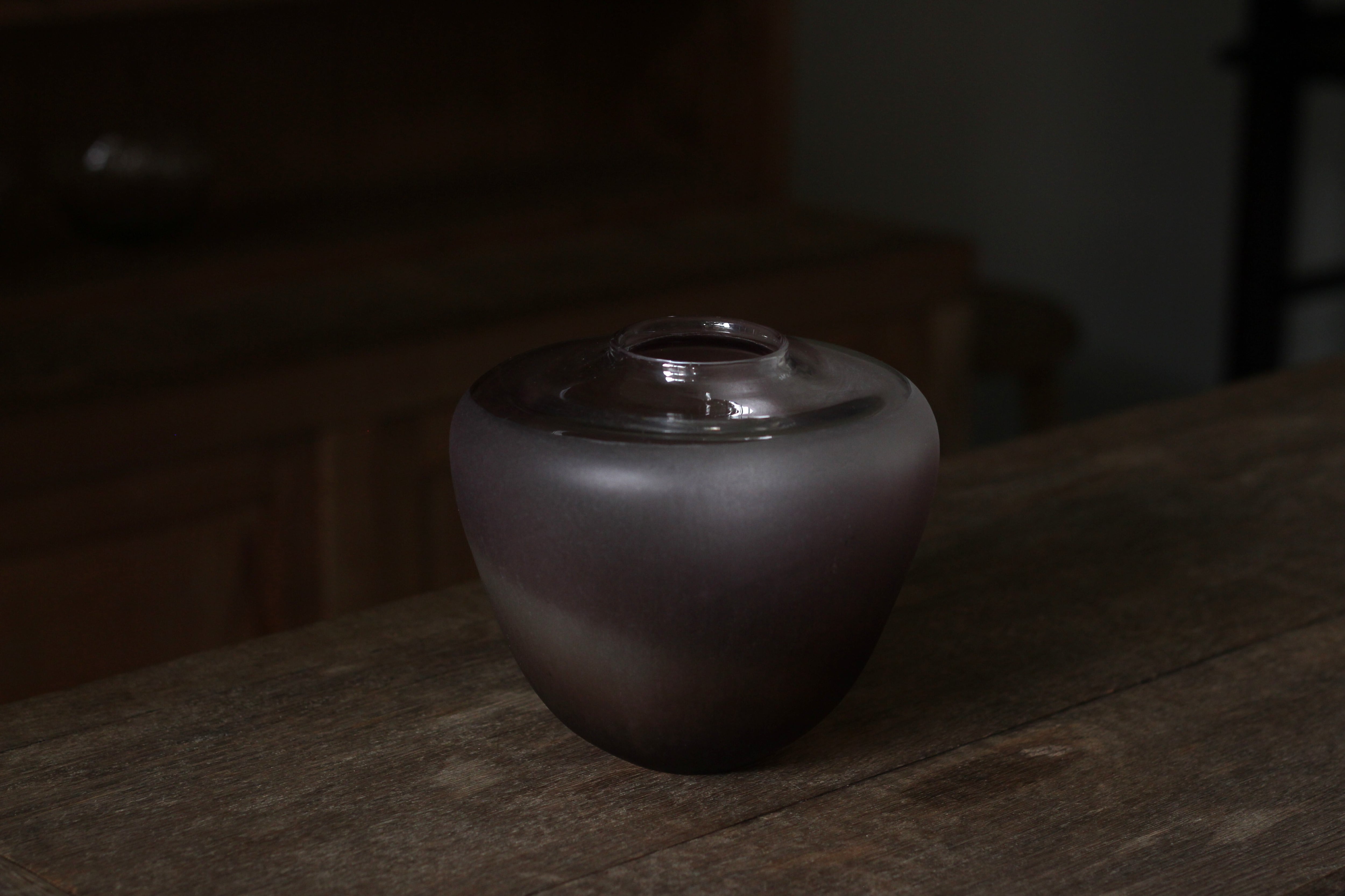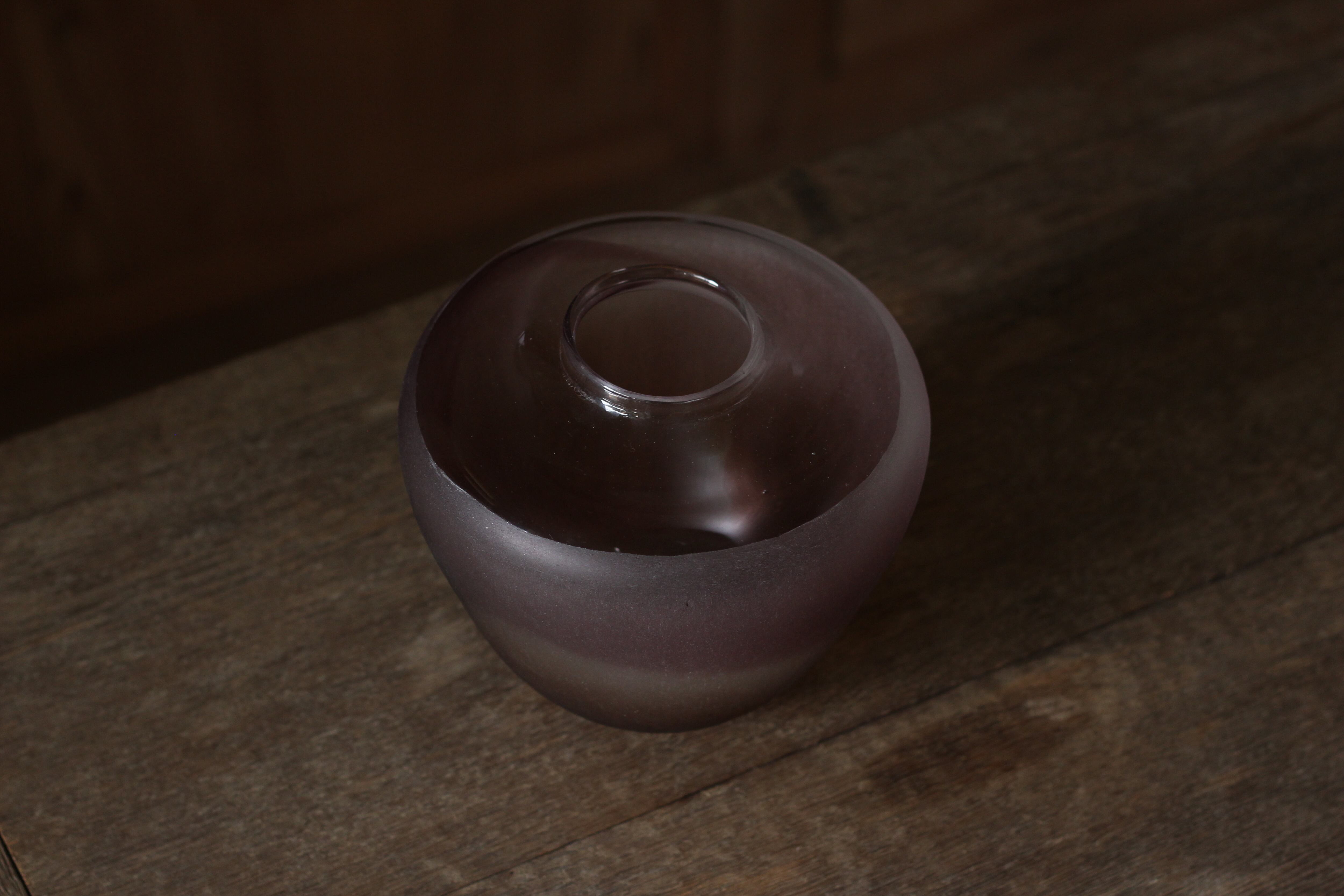ガラスの表面に蝋を焼き付け、表面を燻らせています。その曖昧で不確かな焼き跡に、作為から離れた自然の風景を観ることがあります。燃えついた「跡」が誰かの心象風景に響く、そんな情緒的なモノを作れたらと思っています(境田さんより)。