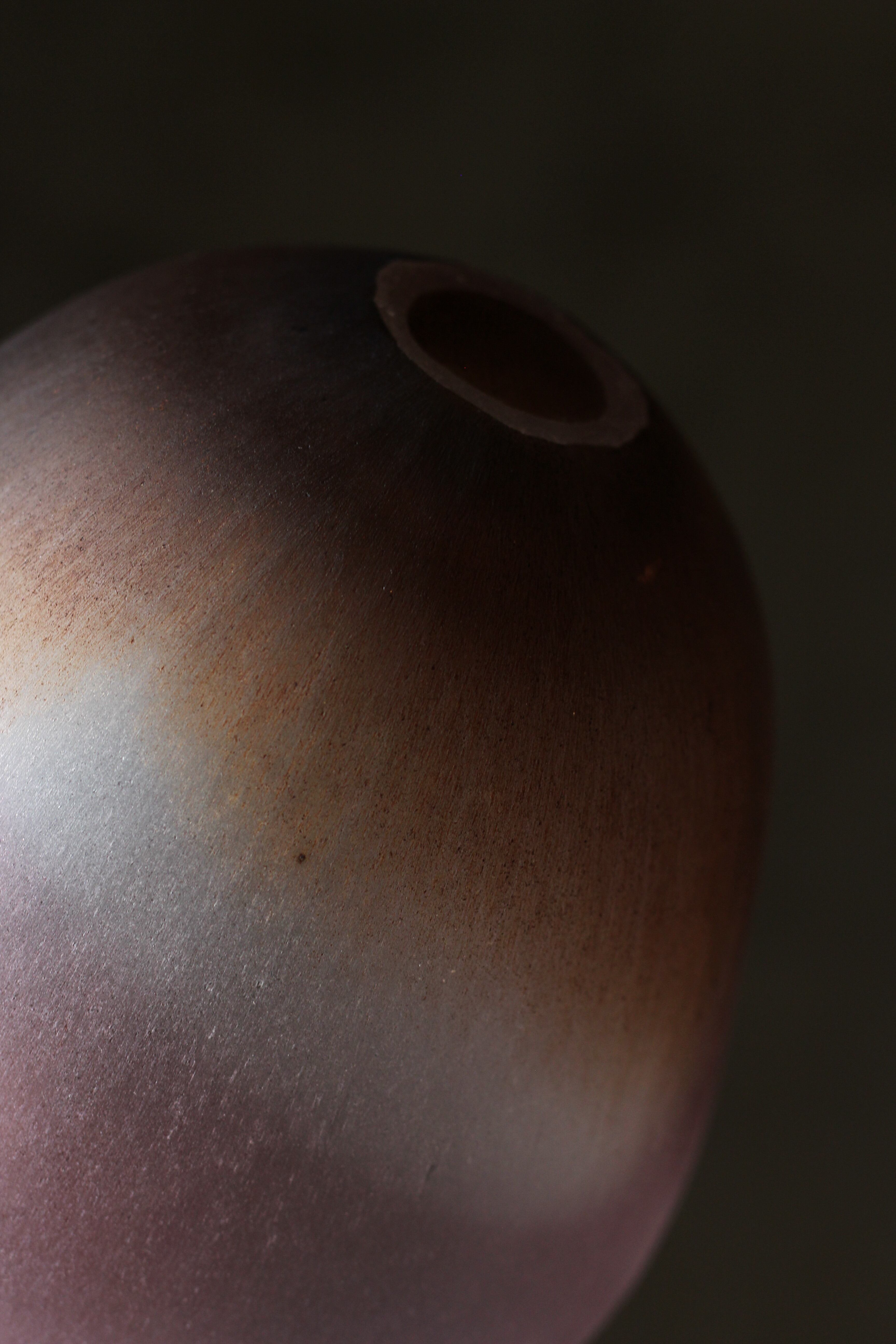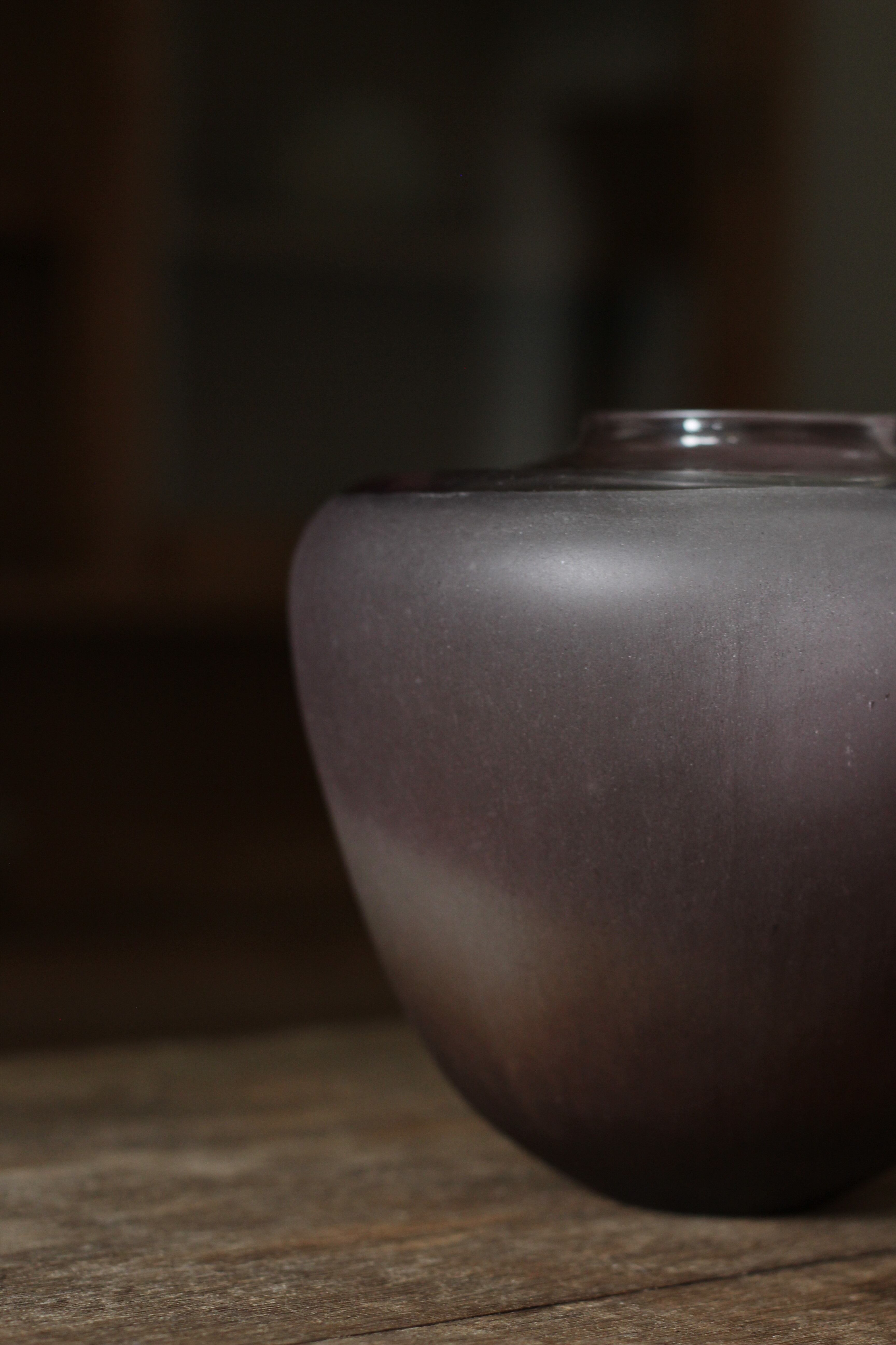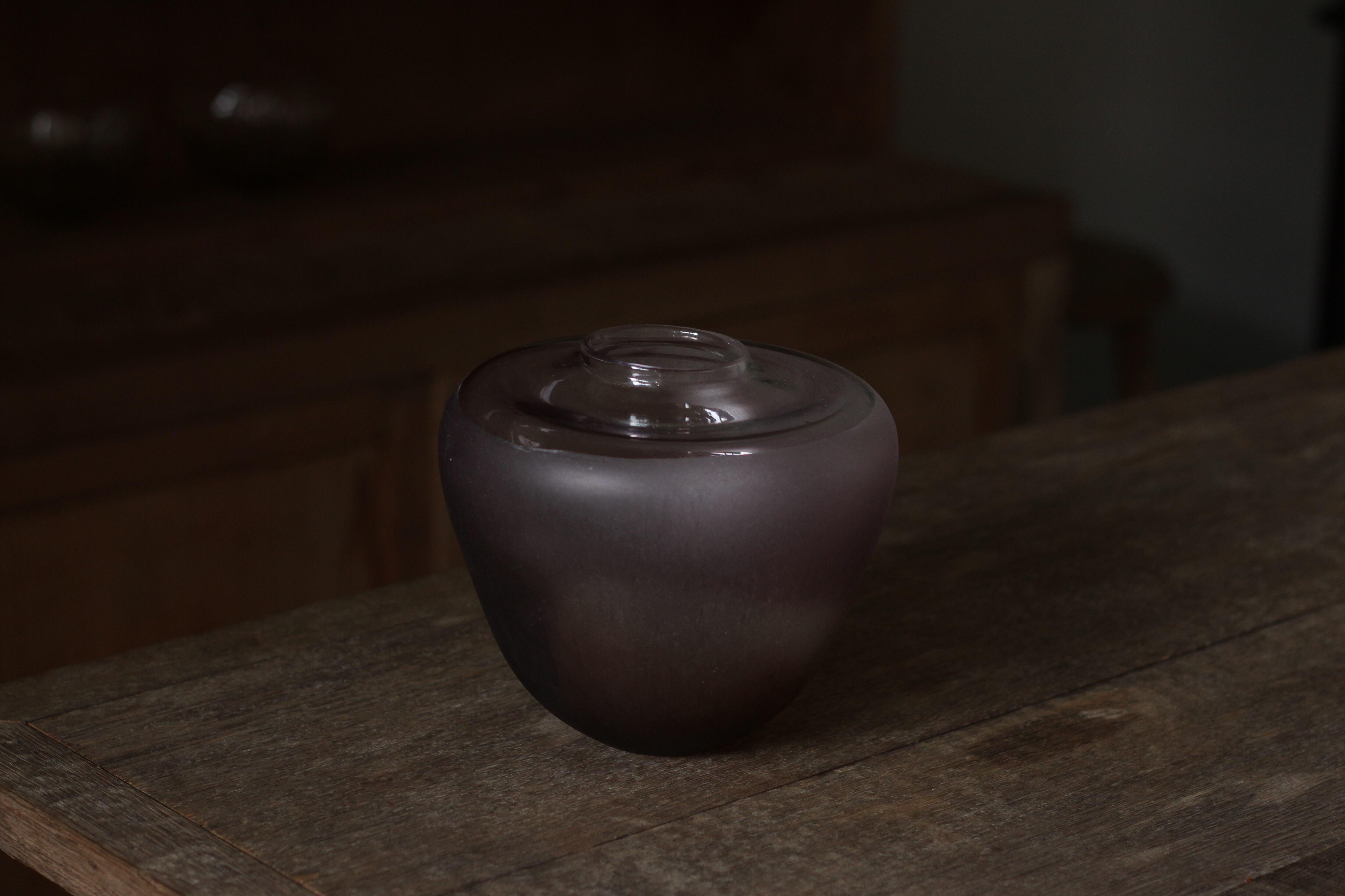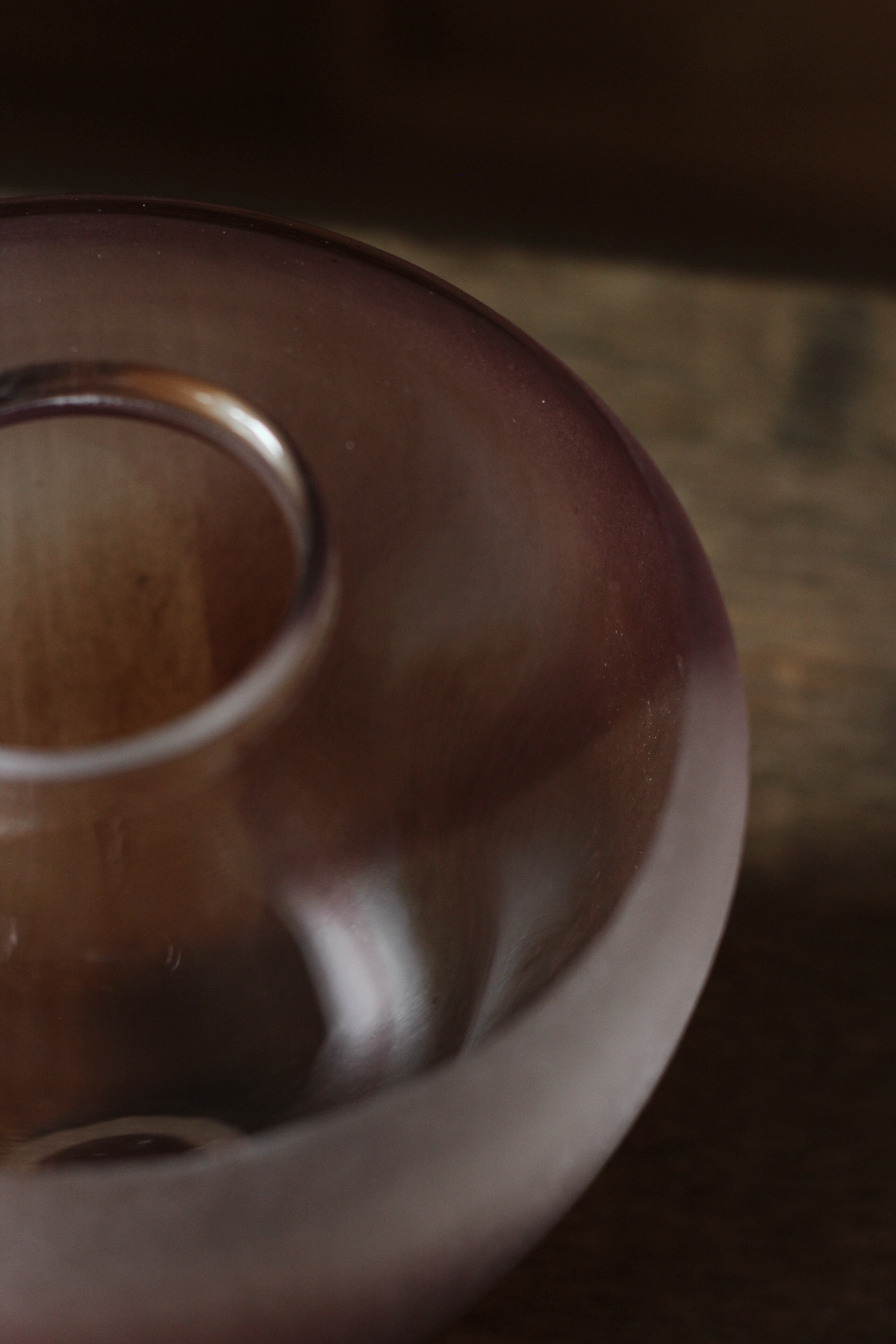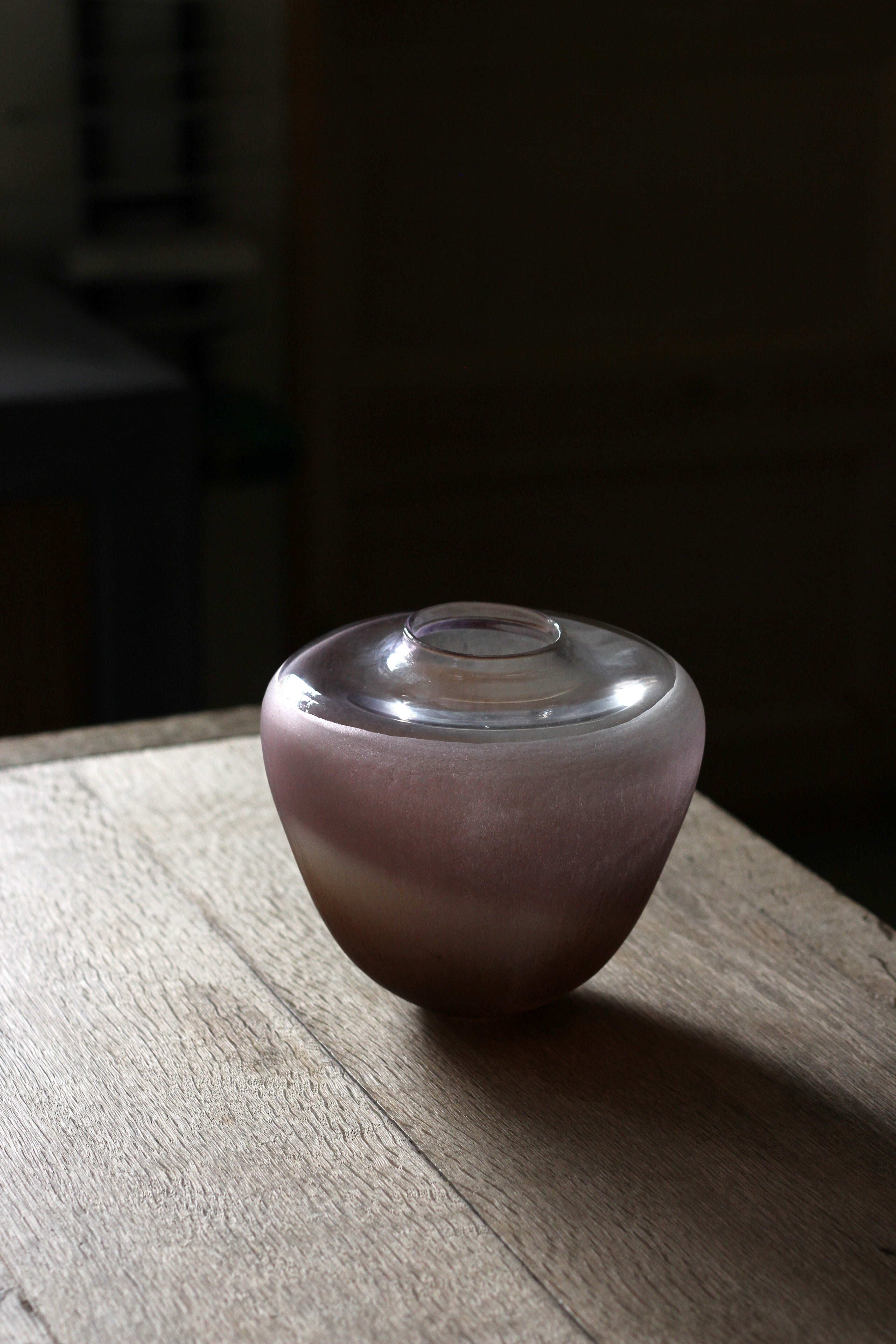 ガラスの表面に蝋を焼き付け、表面を燻らせています。その曖昧で不確かな焼き跡に、作為から離れた自然の風景を観ることがあります。燃えついた「跡」が誰かの心象風景に響く、そんな情緒的なモノを作れたらと思っています(境田さんより)。