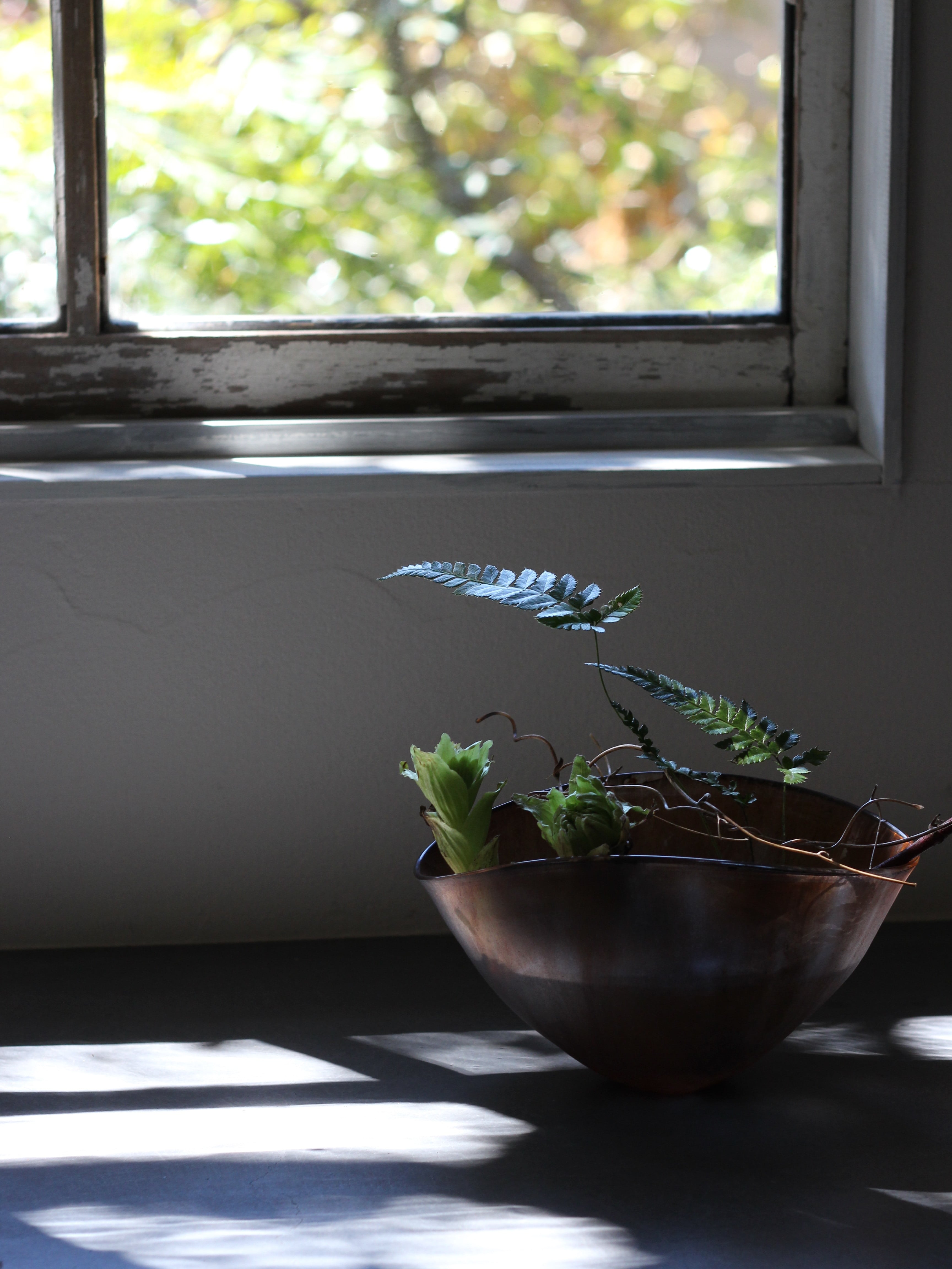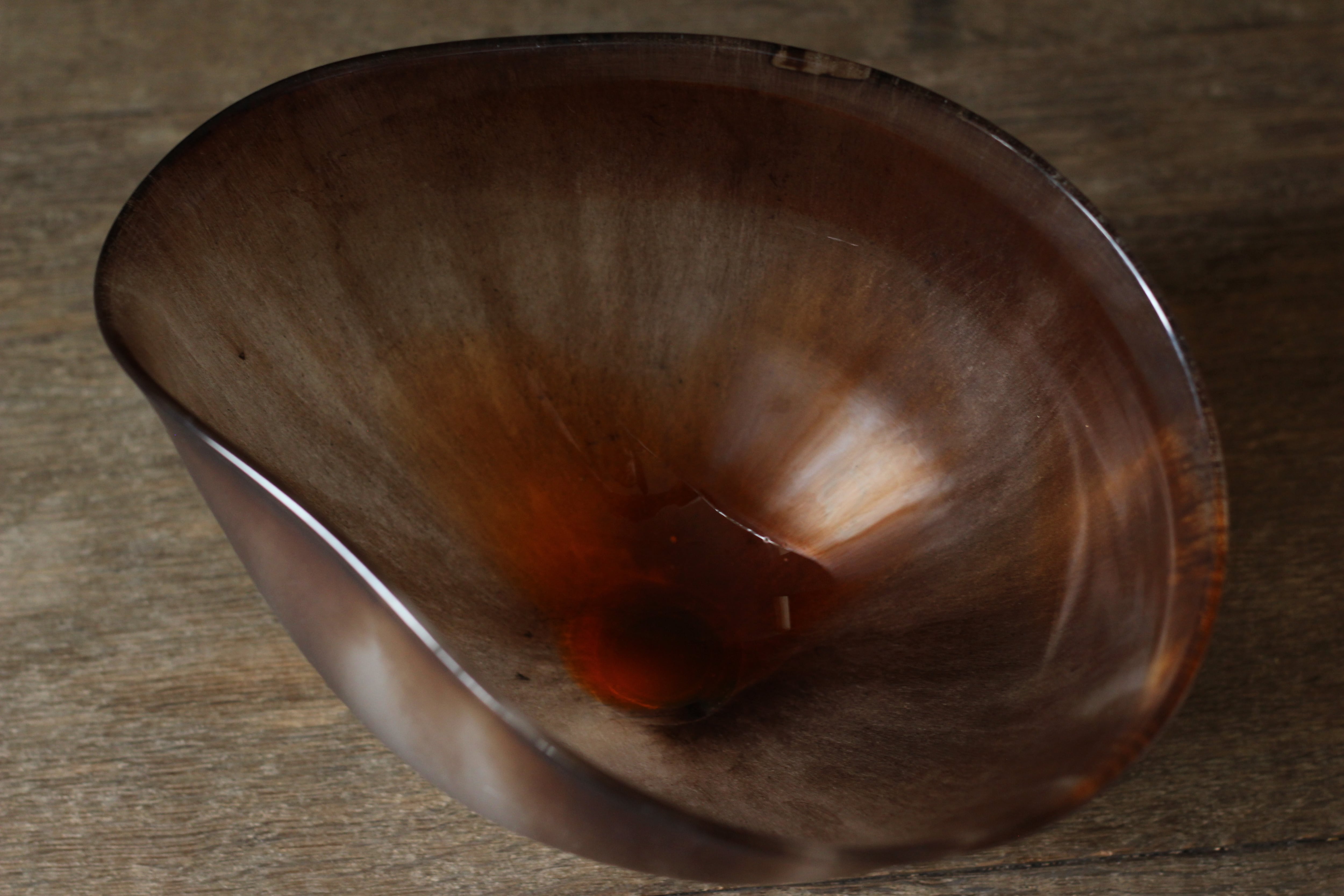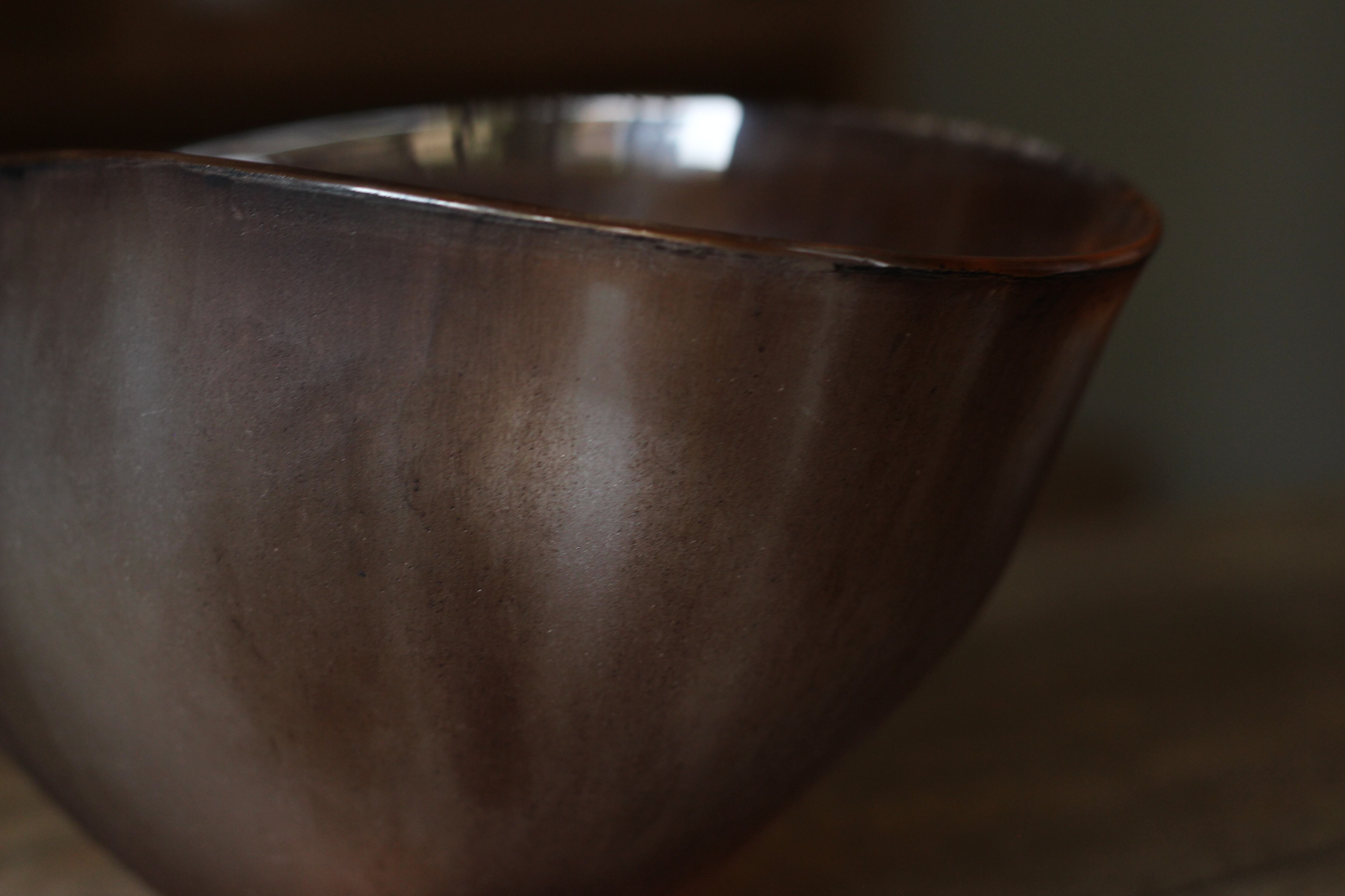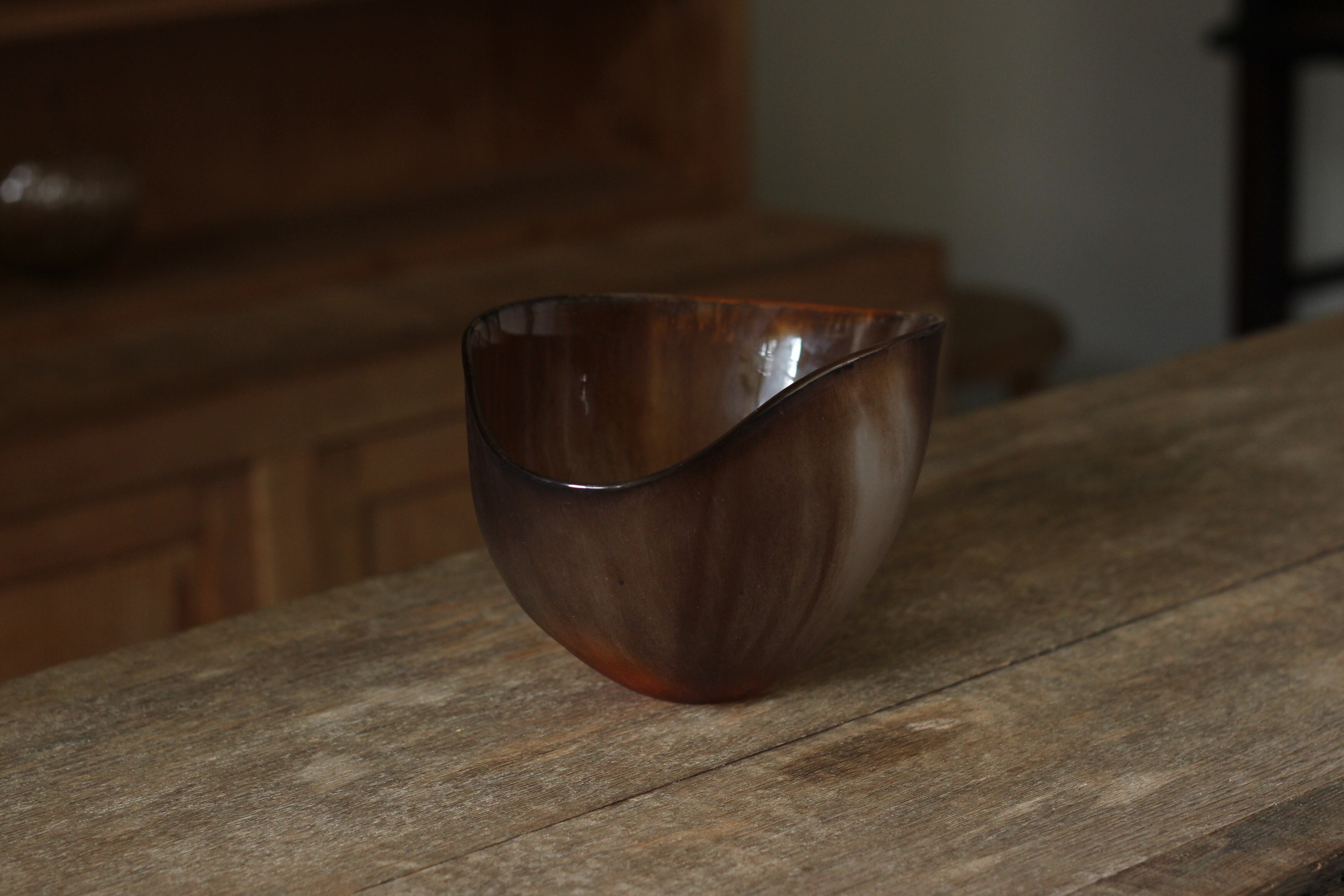 ガラスの表面に蝋を焼き付け、表面を燻らせています。その曖昧で不確かな焼き跡に、作為から離れた自然の風景を観ることがあります。燃えついた「跡」が誰かの心象風景に響く、そんな情緒的なモノを作れたらと思っています(境田さんより)。