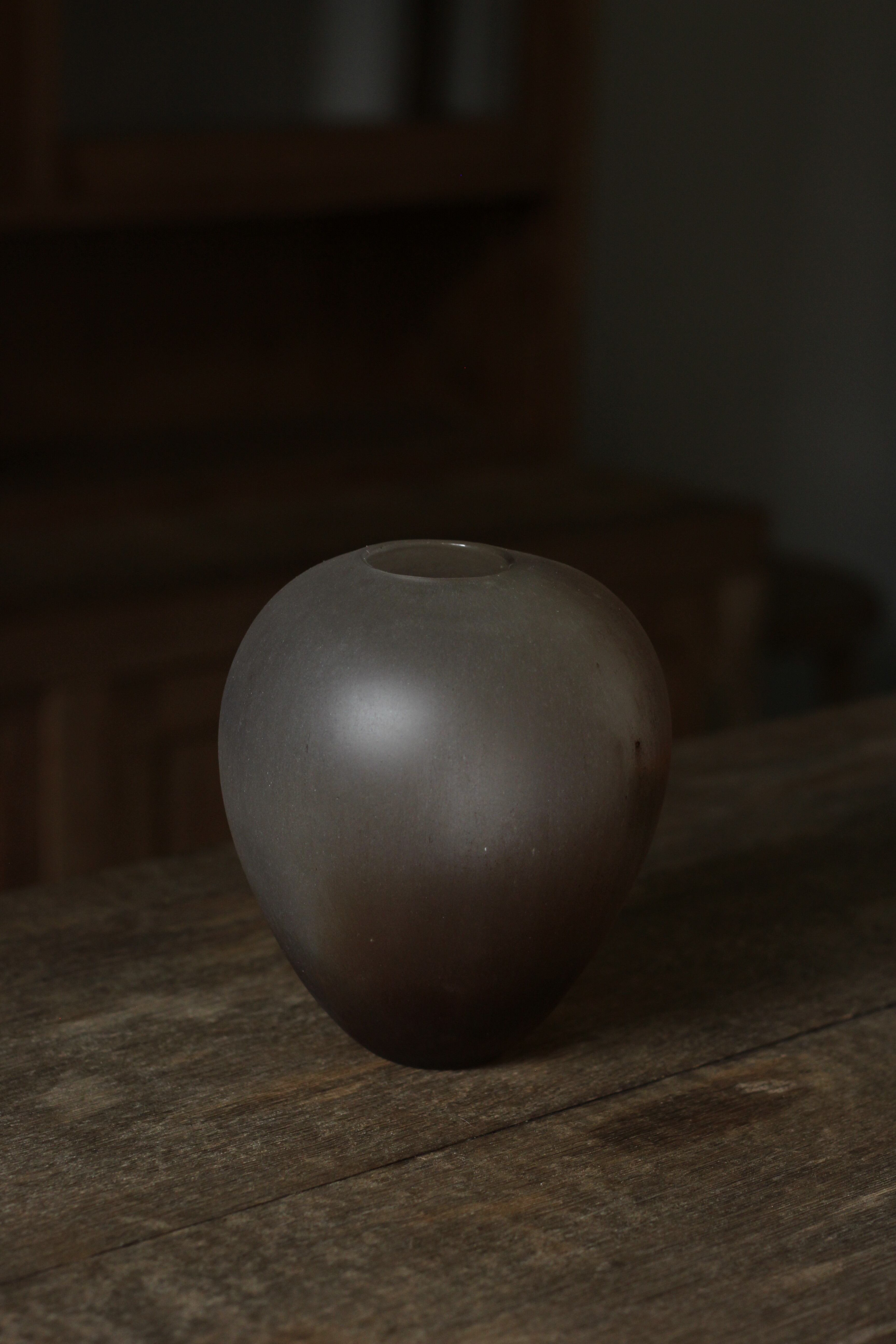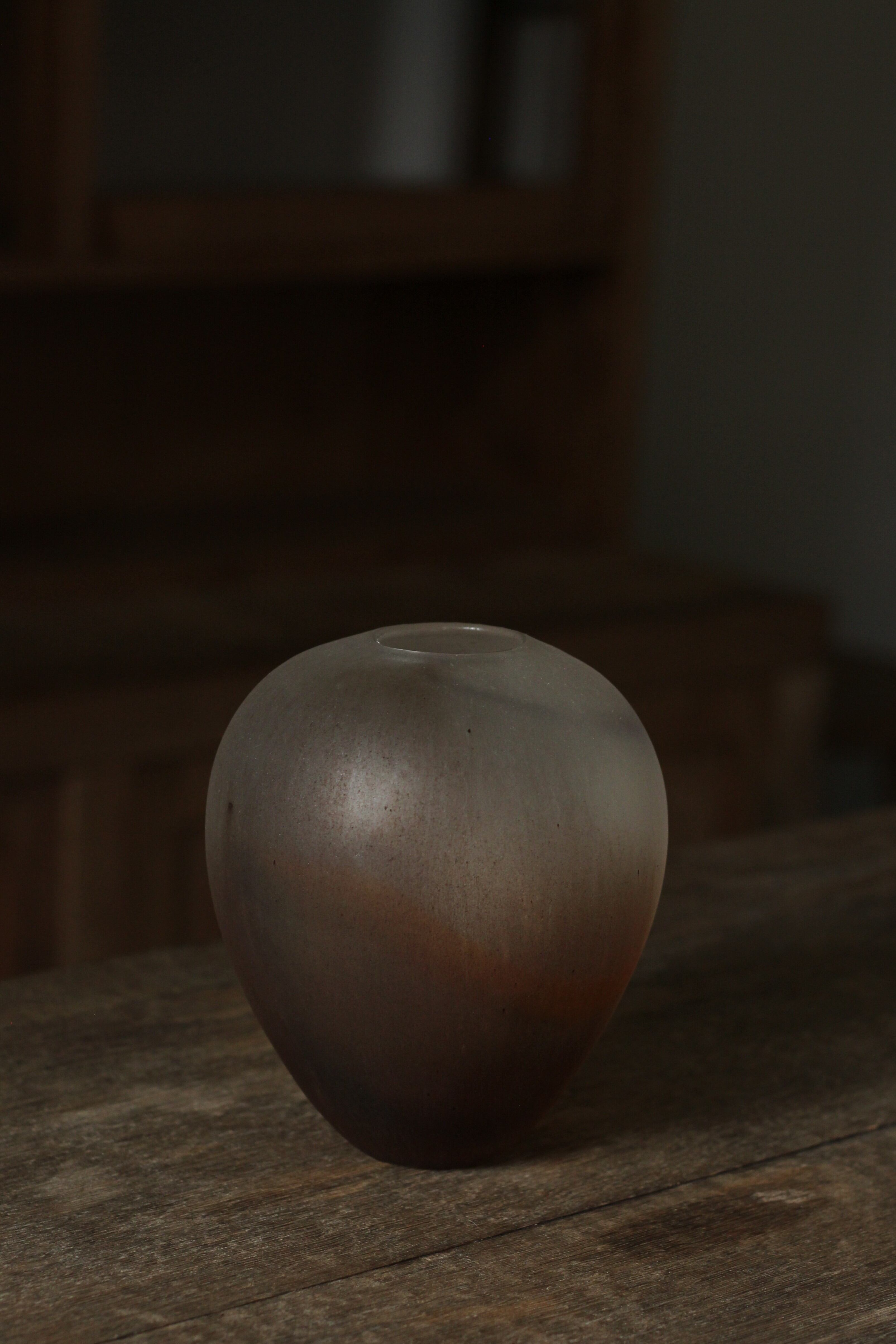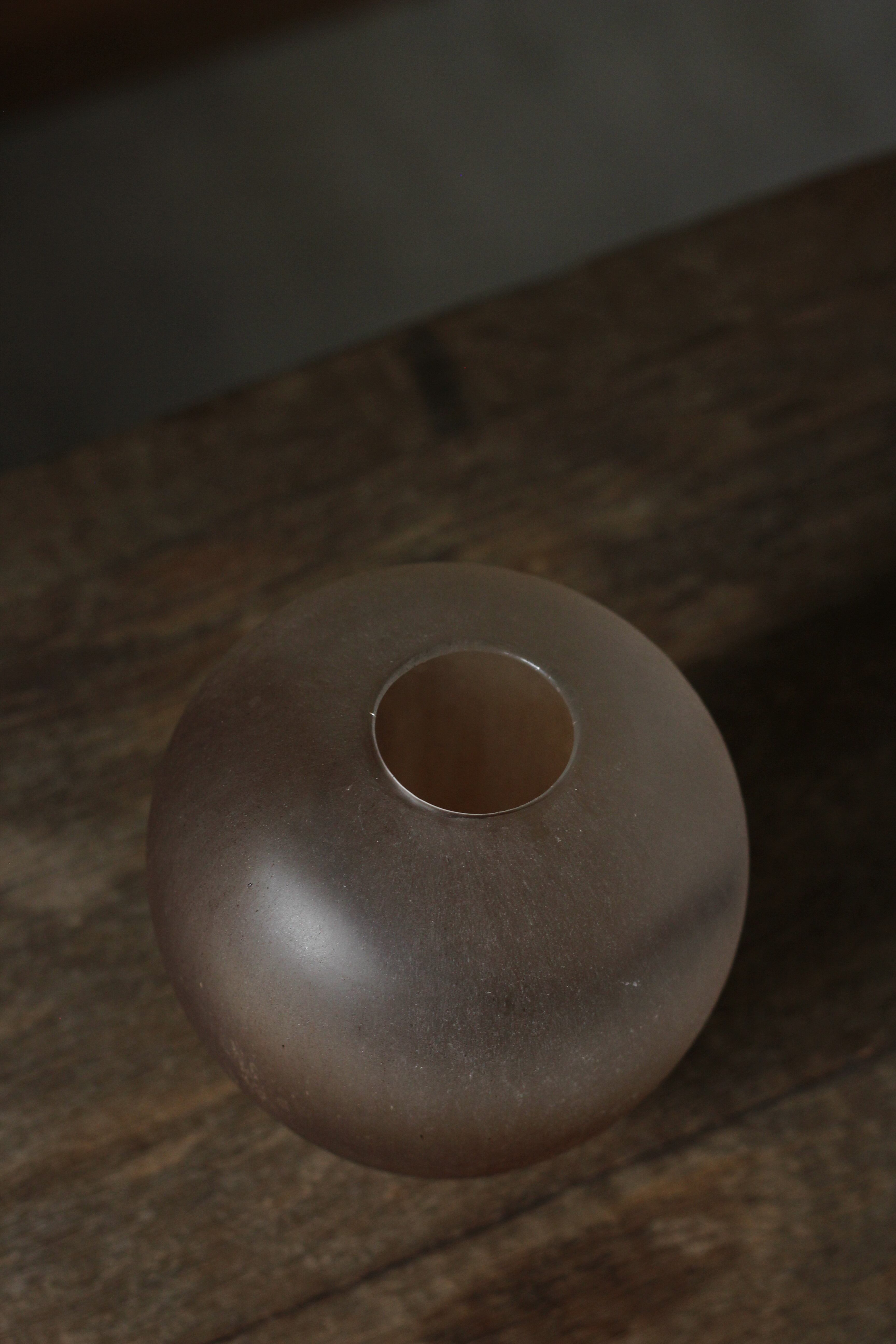 ガラスの表面に蝋を焼き付け、表面を燻らせています。その曖昧で不確かな焼き跡に、作為から離れた自然の風景を観ることがあります。燃えついた「跡」が誰かの心象風景に響く、そんな情緒的なモノを作れたらと思っています(境田さんより)。