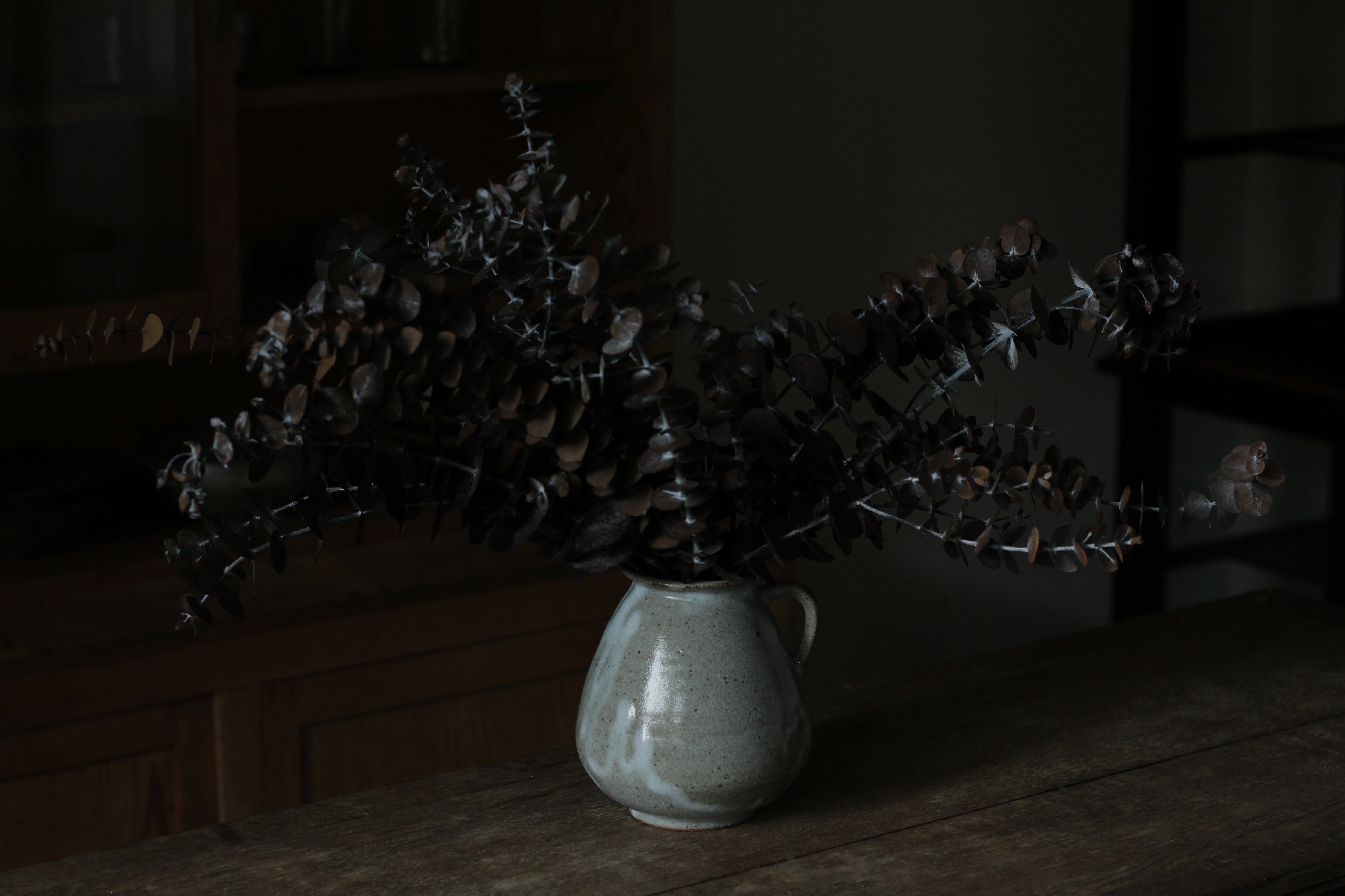 シンプルな長石釉の作品ですが、釉薬の流れが印象的。大胆に生けるのもお勧めです。